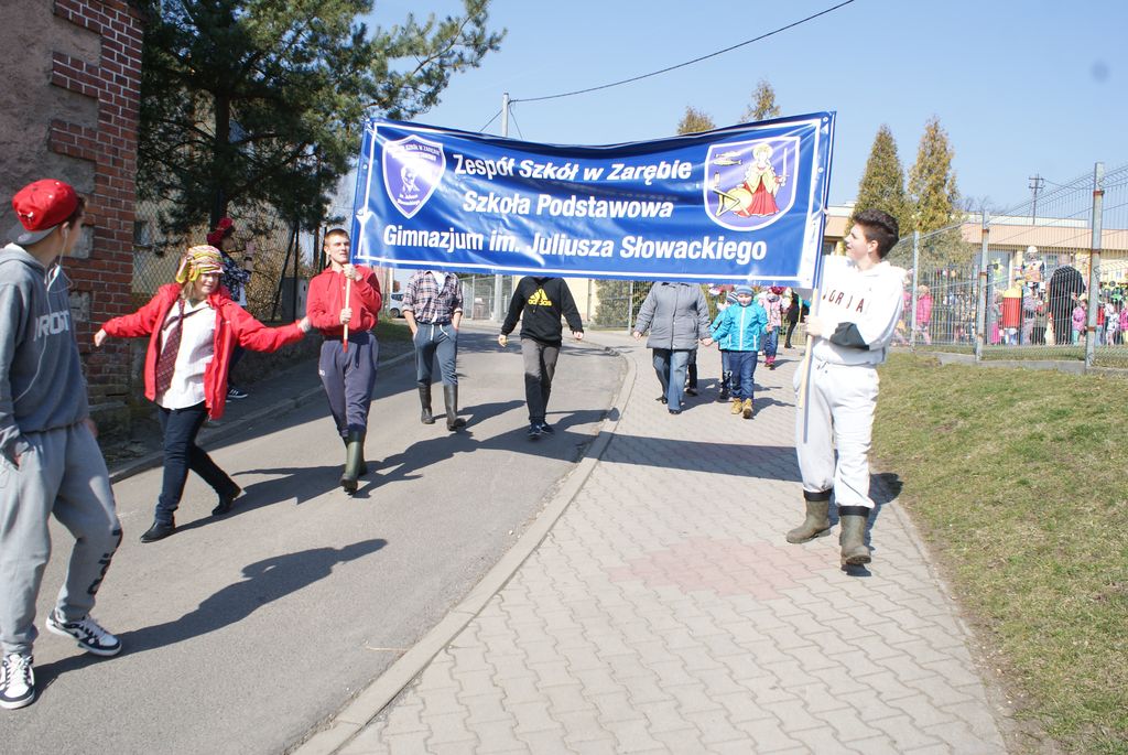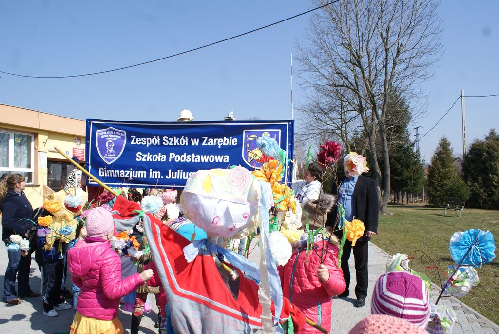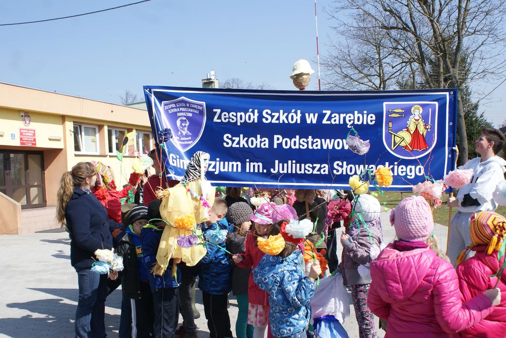 Tradycja każe, by w pierwszy dzień wiosny spaleniem marzanny pożegnać złą zimę, a powitać upragnioną wiosnę. Ten zwyczaj podtrzymały dzieci z naszej szkoły, które wraz z opiekunkami w barwnym korowodzie przeszły przez Zarębę.