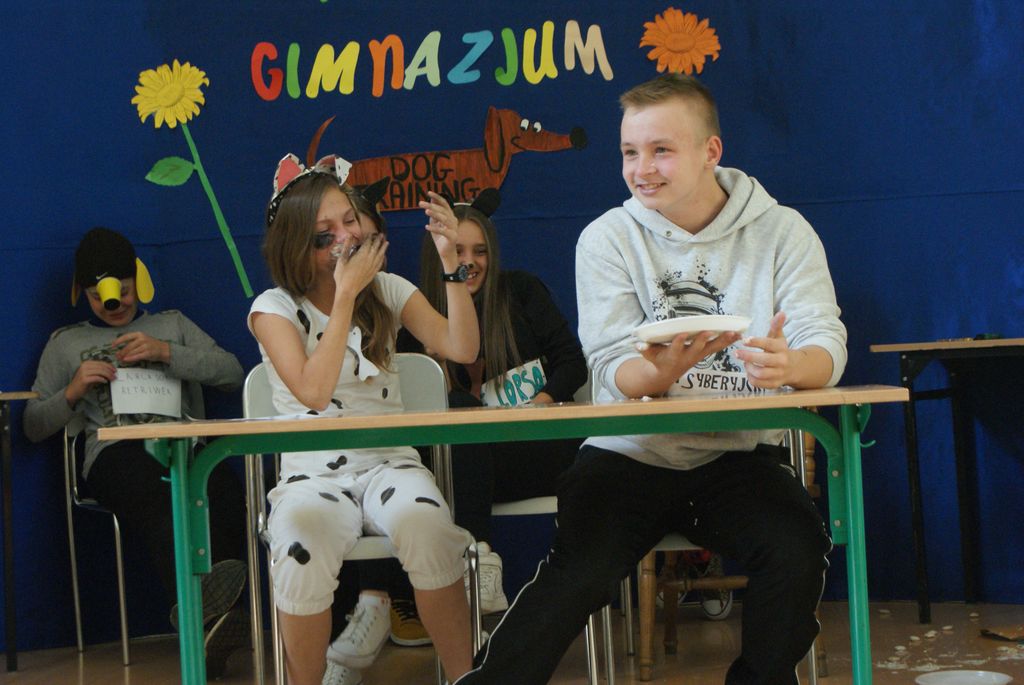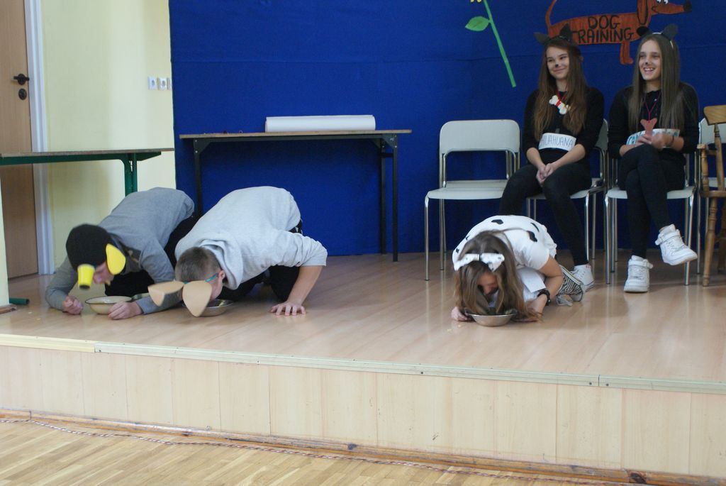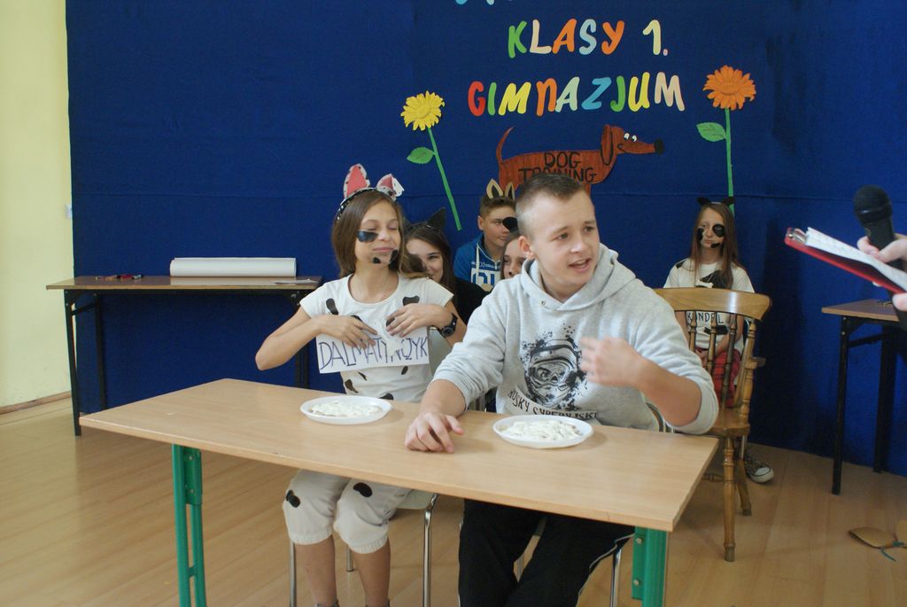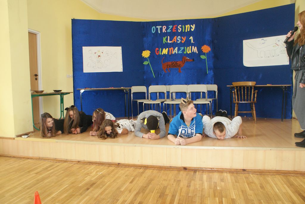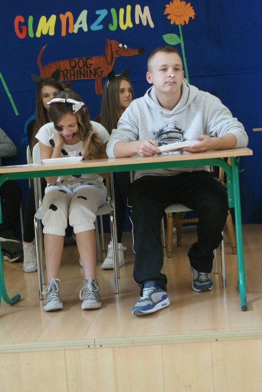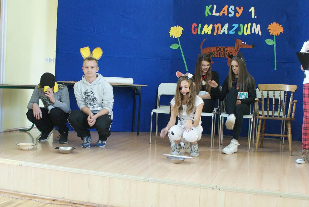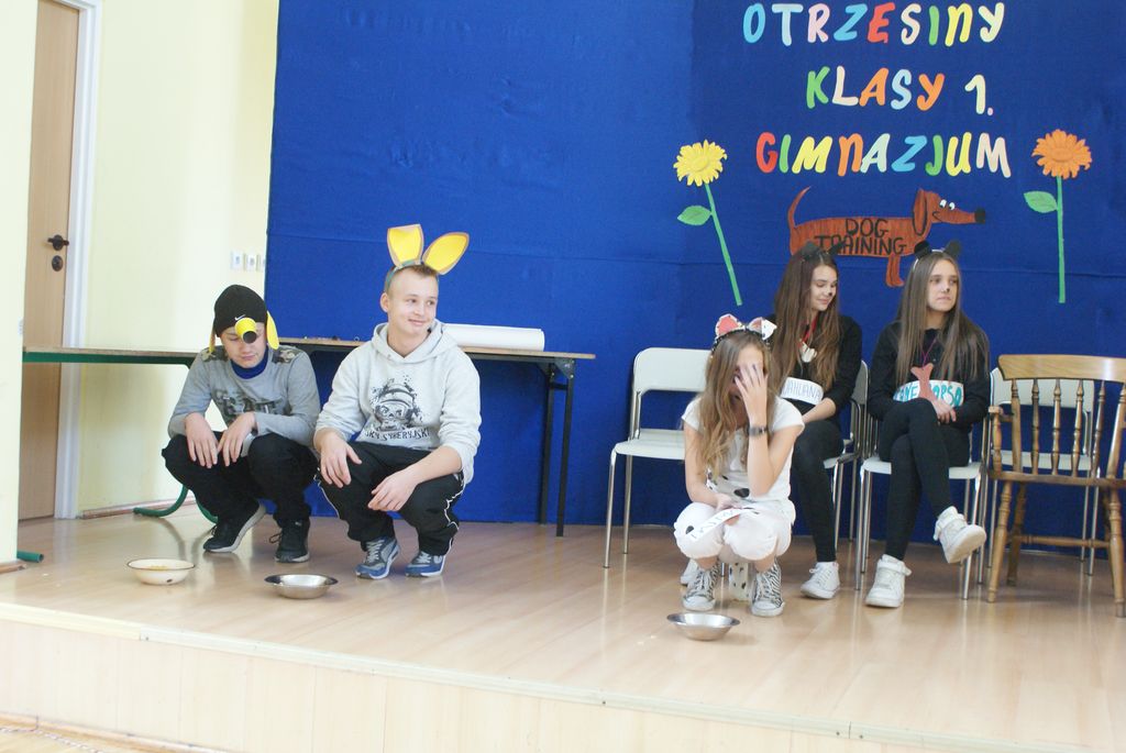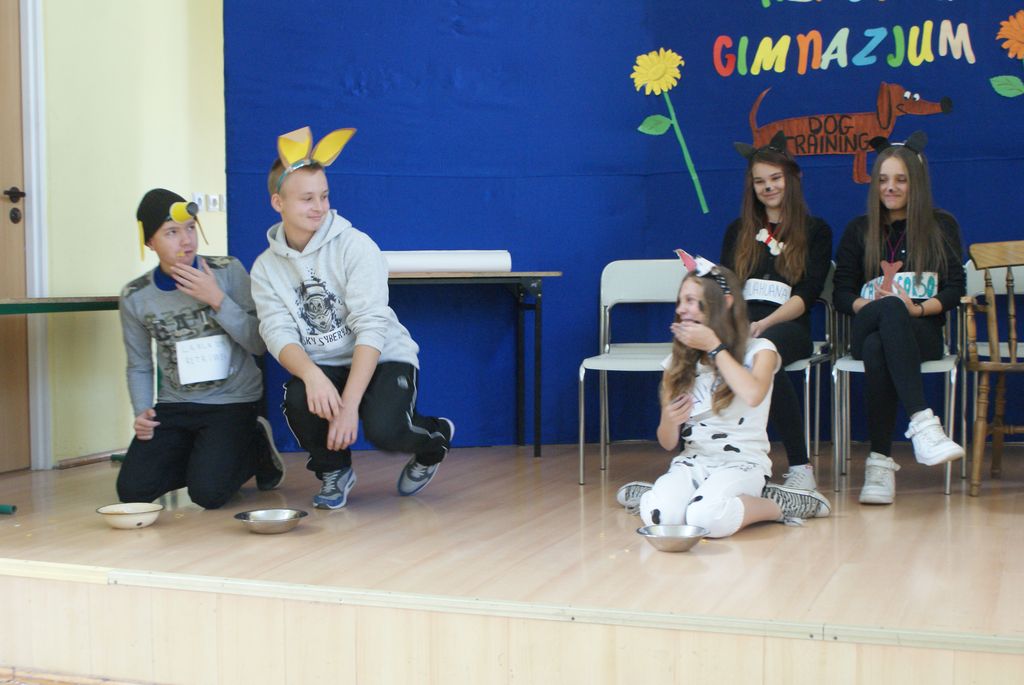 Imprezę przygotowała klasa II. Pierwszoklasiści zostali poddani „tresurze”, ponieważ byli szczeniakami różnych ras psów. Na początku każdy kandydat na gimnazjalistę miał za zadanie przedstawić się jako szczeniak danej rasy psa. Następnie uczniowie mieli zareklamować karmę dla psów.