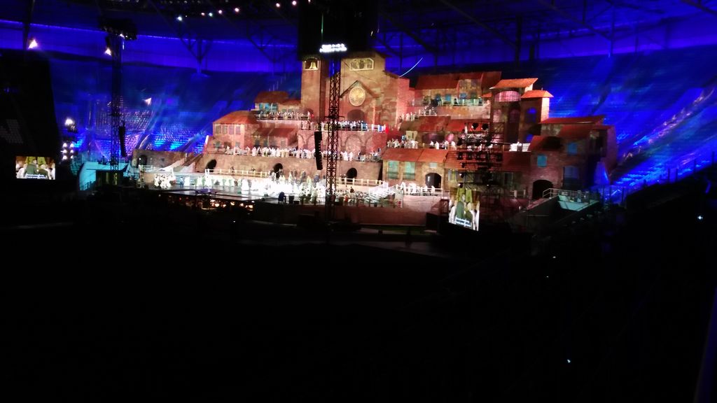 W widowisku oprócz wspaniałych kostiumów i pięknej scenografii były użyte wspaniałe efekty specjalne, projekcje multimedialne, filmy i niezwykłe światła.
