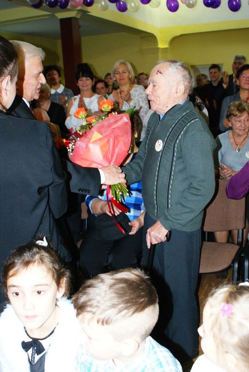 Następnie mowę okolicznościową wygłosił Wójt Gminy Siekierczyn pan Janusz Niekrasz, który przybliżył wydarzenia i fakty z kart historii szkoły, a także przypomniał ludzi oddanych naszej szkole– zwłaszcza dyrektora pana Stanisława Czajkę- współtwórcę nowego budynku szkoły. Na Jego ręce,