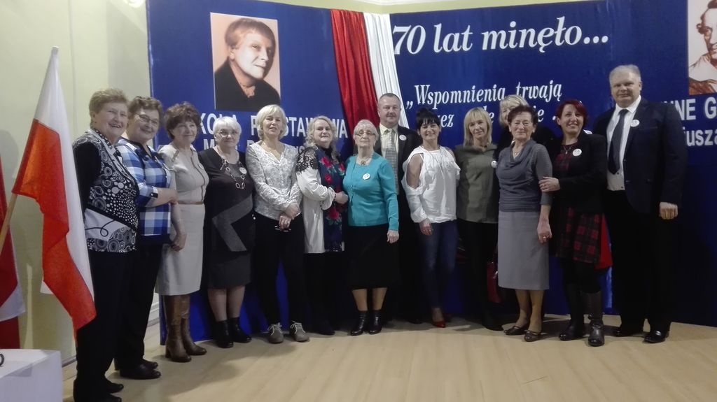 Po mszy świętej wszyscy uczestnicy udali się za pocztami sztandarowymi do szkolnej auli. Tam rozpoczęła się uroczysta gala. W pięknie udekorowanej sali pan dyrektor Jacek Adamski przywitał dostojnych gości, byłych dyrektorów i nauczycieli, pracowników obsługi i administracji, absolwentów, rodziców i uczniów. Dyrektor szkoły podkreślił, że jubileusz 70- lecia jest najlepszą okazją do sięgnięcia w przeszłość, przywołania pamięci o zdarzeniach i ludziach, współtworzących świadectwo, którego zostaliśmy spadkobiercami. Zaznaczył, że dzisiejsza uroczystość przypomina, że w naszej szkole najważniejszy był zawsze i jest- uczeń, duszą szkoły – nauczyciel, wsparciem – rodzice, a dumą – jej absolwenci.