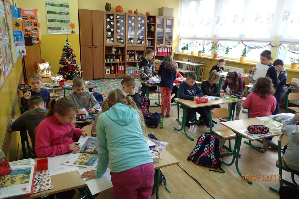 Przed świętami klasa III SP na języku angielskim rozpoczęła projekt pt. „Our free – time activities – czym zajmujemy się w czasie wolnym”. Projekt miał na celu utrwalenie wymowy i pisowni poznanego słownictwa, doskonalenia umiejętności słuchania ze zrozumieniem oraz reagowania na proste polecenia. Jednakże, najważniejszymi celami projektu było kształtowanie umiejętności budowania prostych zdań i pytań w języku angielskim oraz doskonalenie umiejętności interpersonalnych poprzez współpracę w grupie.