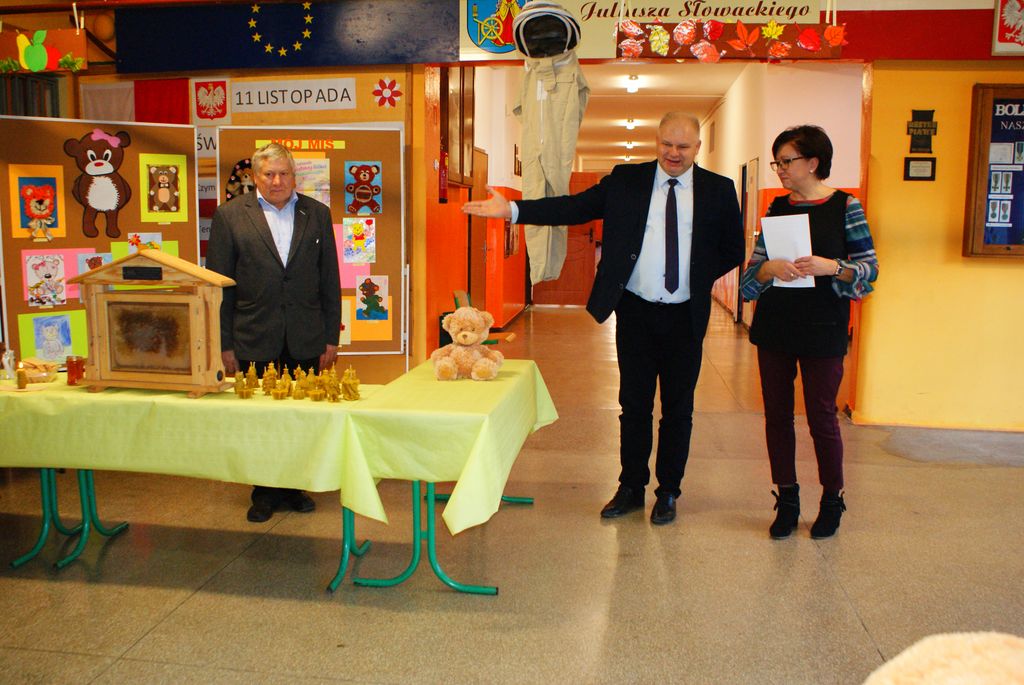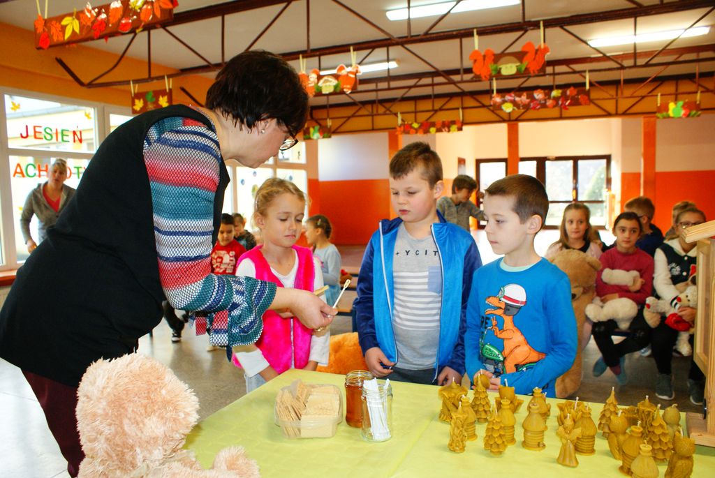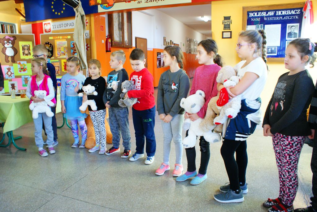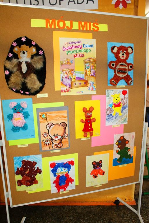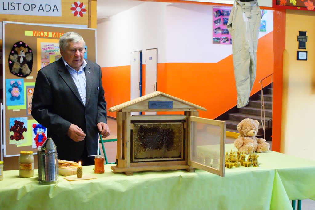 W piątek 24 listopada dzieci pojawiły się w szkole z pluszowymi misiami. Było to w przeddzień Światowego Dnia Pluszowego Misia- święta obchodzonego od 15 lat, ustanowionego w 100 rocznicę wyprodukowania ulubionej przez wszystkich maskotki. W naszej szkole , z okazji tego dnia, najmłodsi dowiedzieli się jak wytwarzany jest miód – przysmak prawdziwych misiów. Wspaniałą wiedzą popartą długoletnim doświadczeniem w hodowli pszczół podzielił się ze wszystkimi pan Józef Rodziewicz z Włosienia, który ma własną pasiekę „Miś”. Został także rozstrzygnięty konkurs plastyczny pod hasłem „Mój miś”.