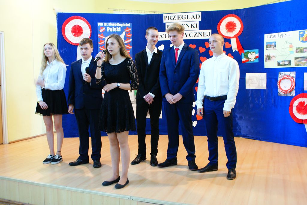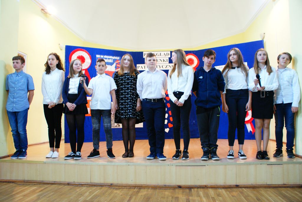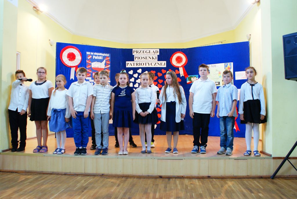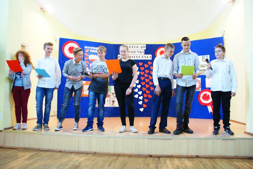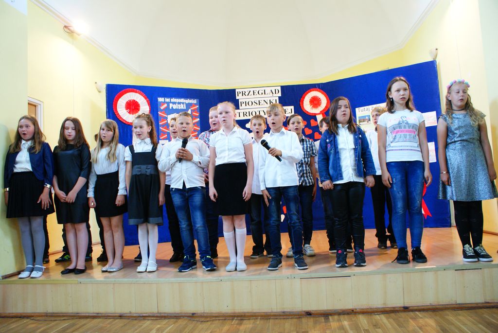 W dniu 28 maja odbył się w naszej szkole, w ramach obchodów Stulecia Odzyskania Niepodległości, Szkolny Przegląd Piosenki Patriotycznej. Wzięły w nim udział wszystkie klasy szkoły podstawowej i gimnazjum. W ramach przeglądu wszystkie klasy przygotowały wybraną przez siebie piosenkę patriotyczną, a następnie wystąpiły z nią przed całą społecznością szkolną. Zarówno klasy szkoły podstawowej jak i gimnazjum zaprezentowały się wspaniale. Komisja w składzie: p. M Richter, S. Nowacka - Wawrzyniecka