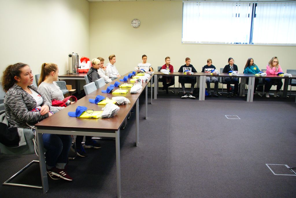 Po prezentacji firmy Pani Daria, Pani Martyna i Pani Marcelina zaprosiły nas na wycieczkę po zakładzie. Ubraliśmy się w odpowiednie stroje ochronne i ruszyliśmy… Pierwszym punktem wycieczki było szkolenie dotyczące bezpieczeństwa. Gdy już „wyglądaliśmy bezpiecznie” i posiedliśmy podstawową wiedze na temat bezpieczeństwa w zakładzie, rozpoczęliśmy zwiedzanie.