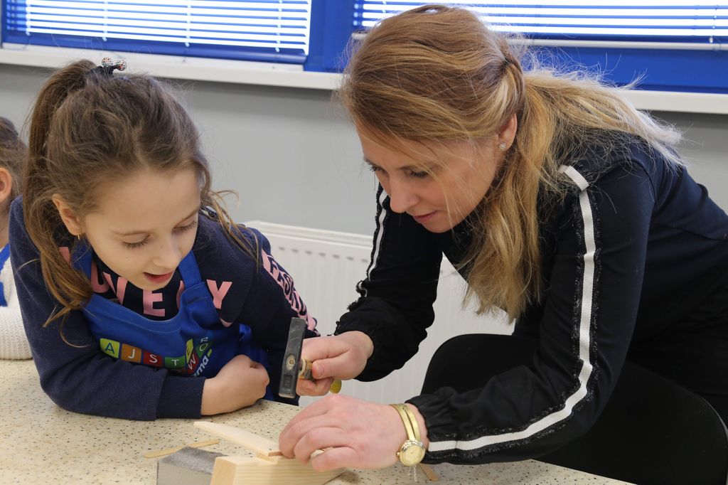15 stycznia klasa I, wraz z opiekunami: p. Marzeną Adamską i p. Olimpią Kowal-Gadecką, udała się do zgorzeleckiej Castoramy na warsztaty „Majsterkowo”. Pod czujnym okiem pana Marcina uczniowie pracowali z drewnem. Każdy mógł sobie wybrać zabawke, którą będzie tworzył. Po otrzymaniu elementów dzieci przystąpiły do pracy, efektem której były piękne samoloty i kołyski.