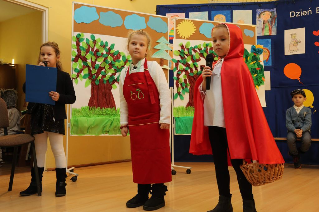 Dzieci zaprezentowały swoim kochanym Babciom i Dziadkom inscenizację słowno- muzyczną, scenkę „Jedzie Jacek tramwajem” oraz współczesną bajkę „Czerwony Kapturek”. Dodatkowym prezentem było głośne odśpiewanie „Sto lat” oraz laurki kwiatki i serduszka. Babcie i Dziadkowie mieli za zadanie rozpoznać się na portrecie namalowanym przez wnuczęta, który w nagrodę otrzymali na pamiątkę.