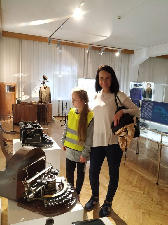 Następnie wybraliśmy się do Muzeum Poczty i Telekomunikacji, gdzie mogliśmy zobaczyć m.in. szyldy i skrzynki pocztowe, wagi listowe, przybory do pisania, kałamarze, kasetki na znaczki pocztowe, kufry, sekretarzyki podróżne, zegar dyliżansowy w srebrnej kopercie i skórzanym etui, podróżny mosiężny piórnik z kałamarzem z XVIII w., fragmenty kamiennego słupa dystansowego poczty saskiej ustawionego w Zgorzelcu w 1725 r., szyld stacji pocztowej w Słonimiu z czasów panowania ostatniego króla polskiego Stanisława Augusta Poniatowskiego oraz pierwszą polską automatyczną skrzynkę pocztową tzw. Syrenę z ok. 1924 r.