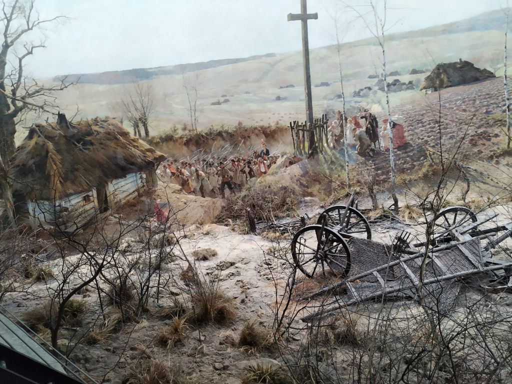 W dalszej części wycieczki przeszliśmy do Panoramy Racławickiej. W czasie wejścia na szczyt wszyscy myśleliśmy, że wychodzimy na zewnątrz. Po chwili usłyszeliśmy ciekawą historię o tym, jak powstał ten słynny obraz. Dowiedzieliśmy się, że obraz ten był tworzony przez 9 miesięcy oraz został namalowany przez 9 wybitnych malarzy, a najważniejsi malarze tamtych czasów to: Jan Styka i Wojciech Kossak. Obraz ma 120 metrów długości i 15 metrów wysokości, był on malowany w całości na wielkim płótnie.