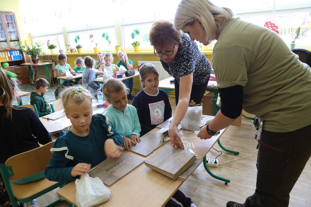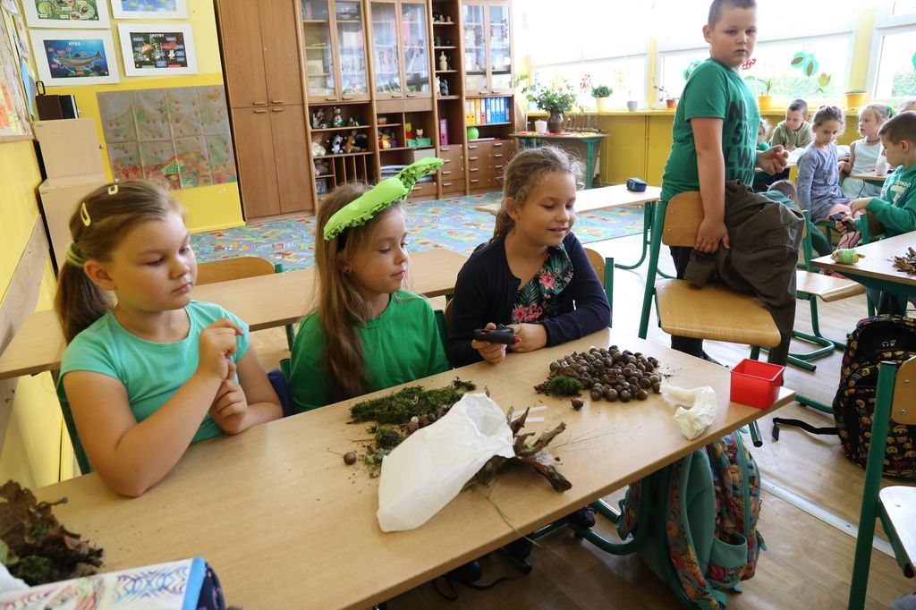 Równolegle z zajęciami leśników odbywała się Leśna gra planszowa dla klasy I, przygotowana przez uczennice z klasy VIII: Julię, Oliwkę, Julitę i Oliwkę.