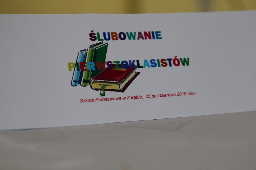 25 października 2019 r. uczniowie klasy pierwszej Szkoły Podstawowej w Zarębie zostali pasowani na ucznia. Zanim nastąpił ten ważny moment, pierwszoklasiści zaprezentowali na scenie swoje umiejętności recytatorskie, wokalne, taneczne oraz wiedzę z zakresu poruszania się po drodze, rozwiązywania działań matematycznych, budowę wyrazów i zdań. Po ślubowaniu i pasowaniu Wójt Gminy Dariusz Furdykoń, panie z przedszkola oraz rodzice obdarowali pierwszoklasistów licznymi prezentami oraz przepysznym tortem. Uroczystość zakończyła się spotaniem na słodkim poczęstunku gości, rodziców i uczniów klasy pierwszej.