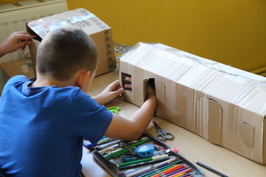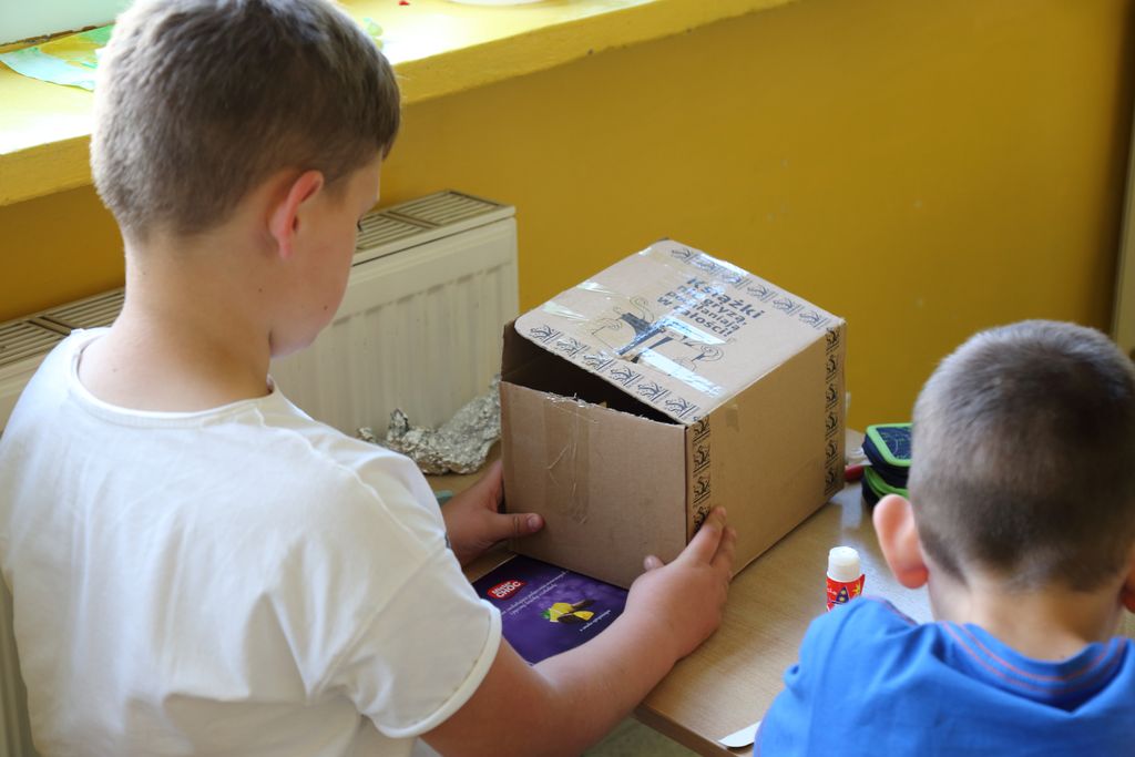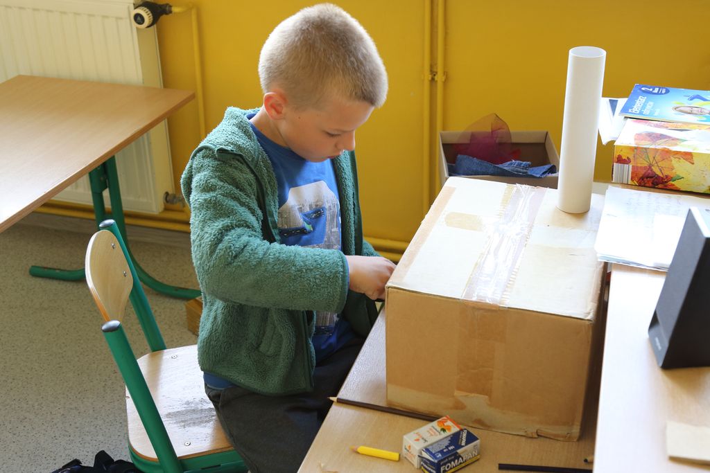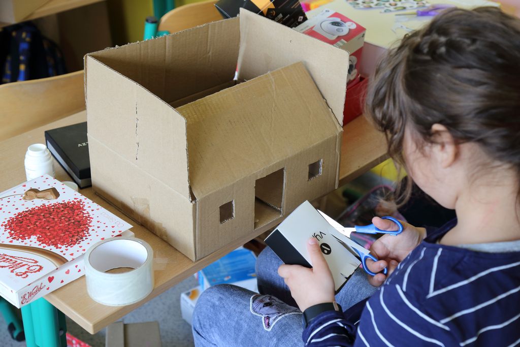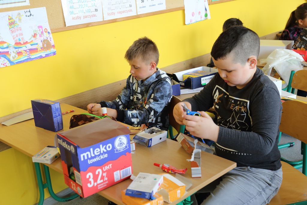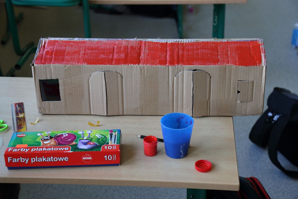 Niestety, czas nie pozwolił nam dokończyć kartonowych domów w szkole i dzieci zabrały cząstkę naszego „klasowego Krakowa” do dokończenia w domu.
