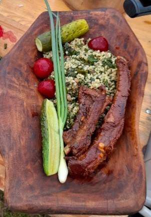 Daniem, które przyrządzaliśmy była: kasza z lebiodą i pokrzywą, żeberko w miodzie oraz ogórek małosolny. Na tablicach oraz ulotkach, które były rozdawane zainteresowanym, opisane były wartości odżywcze składników oraz przepisy, jak sporządzić te danie.