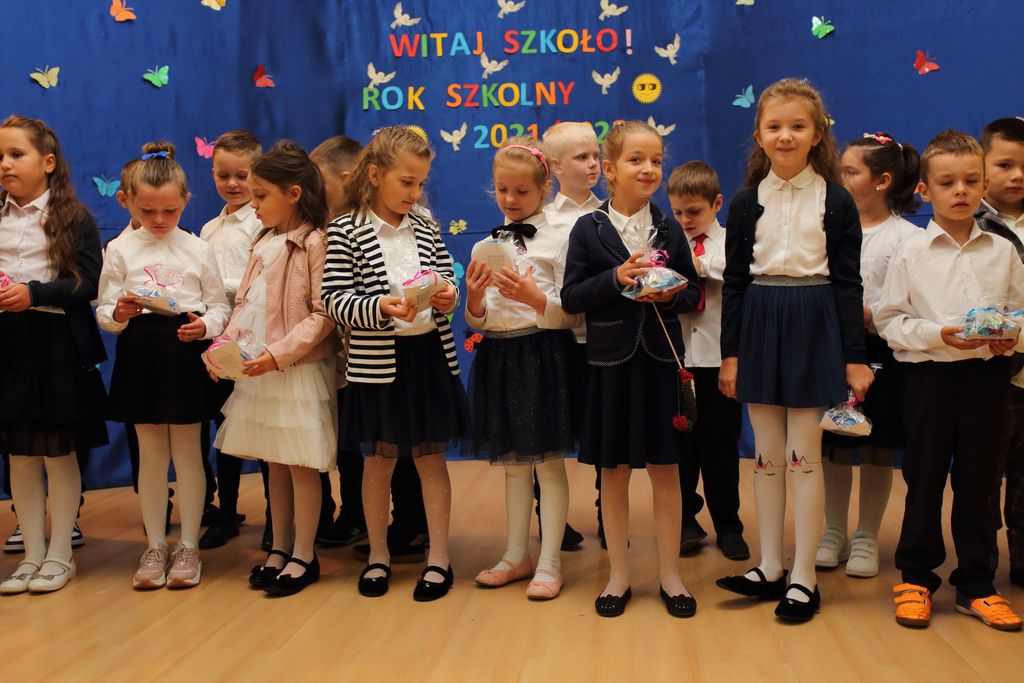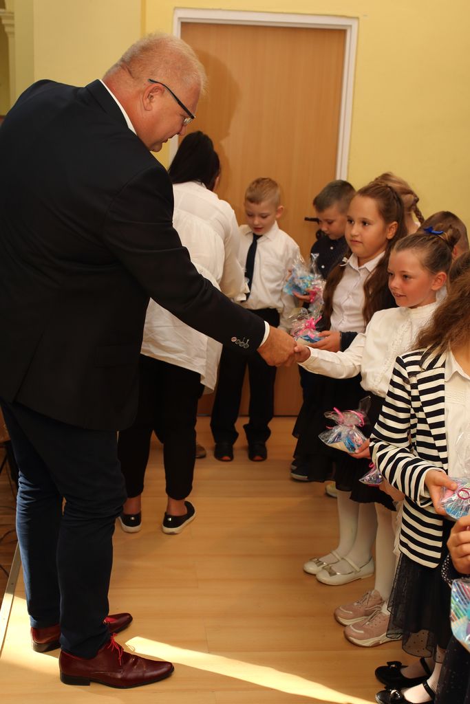 Na uroczystej inauguracji pan dyrektor Jacek Adamski przywitał bardzo serdecznie wszystkich uczniów oraz przybyłych gości. Przedstawił nowych i obecnie uczących nauczycieli w naszej szkole. Dużo ciepłych słów skierował do pierwszaków, których przywitała i przedstawiła również wychowawczyni pani Marzena Stachnik. To dla nich i ich rodziców bardzo ważny dzień.