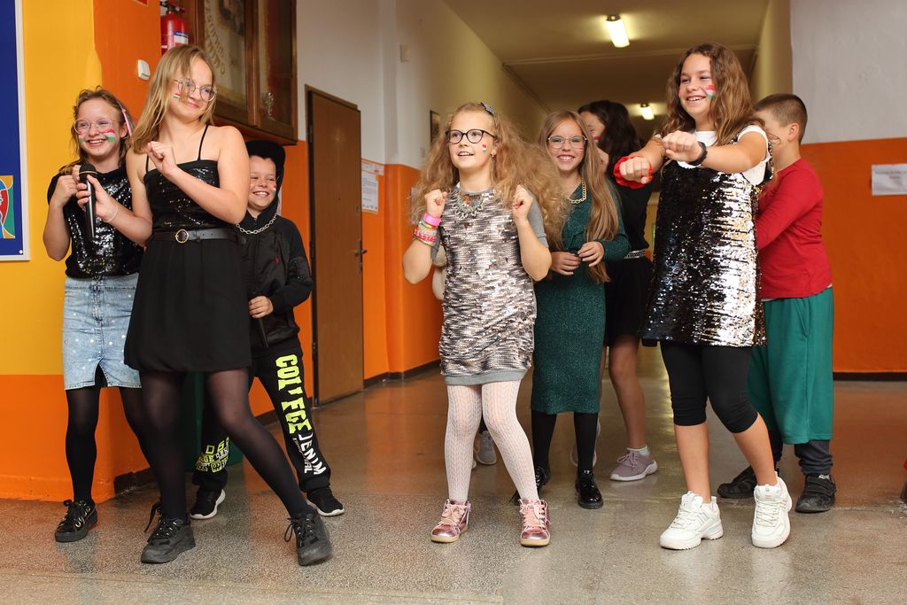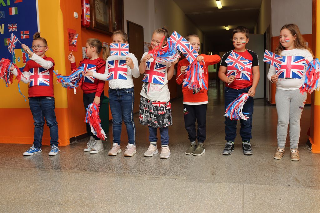 W naszej szkole dzień ten był wyjątkowy, bogaty w działania, na co wpływ miał otwarty charakter przedsięwzięcia. Nauczyciele we współpracy z uczniami i ich rodzicami przygotowali stoiska z narodowymi potrawami i smakołykami z całej Europy. Nie zabrakło fantastycznego tiramisu, francuskich naleśników w wykonaniu dyrektora Jacka Adamskiego, czy włoskiej sałatki caprese w postaci koreczków. Cała społeczność szkoły zebrała się w holu szkoły, a następnie uczniowie z każdej klasy zaśpiewali piosenki w wylosowanych wcześniej językach. Na korytarzach szkoły uczniowie za pomocą QRkodów poznawali ciekawostki językowe. Na koniec uroczystości wszyscy zatańczyli do piosenki Jerusalema. Po wyczerpujących tańcach i śpiewaniu każdy, kto chciał, mógł degustować przepyszne potrawy europejskie.