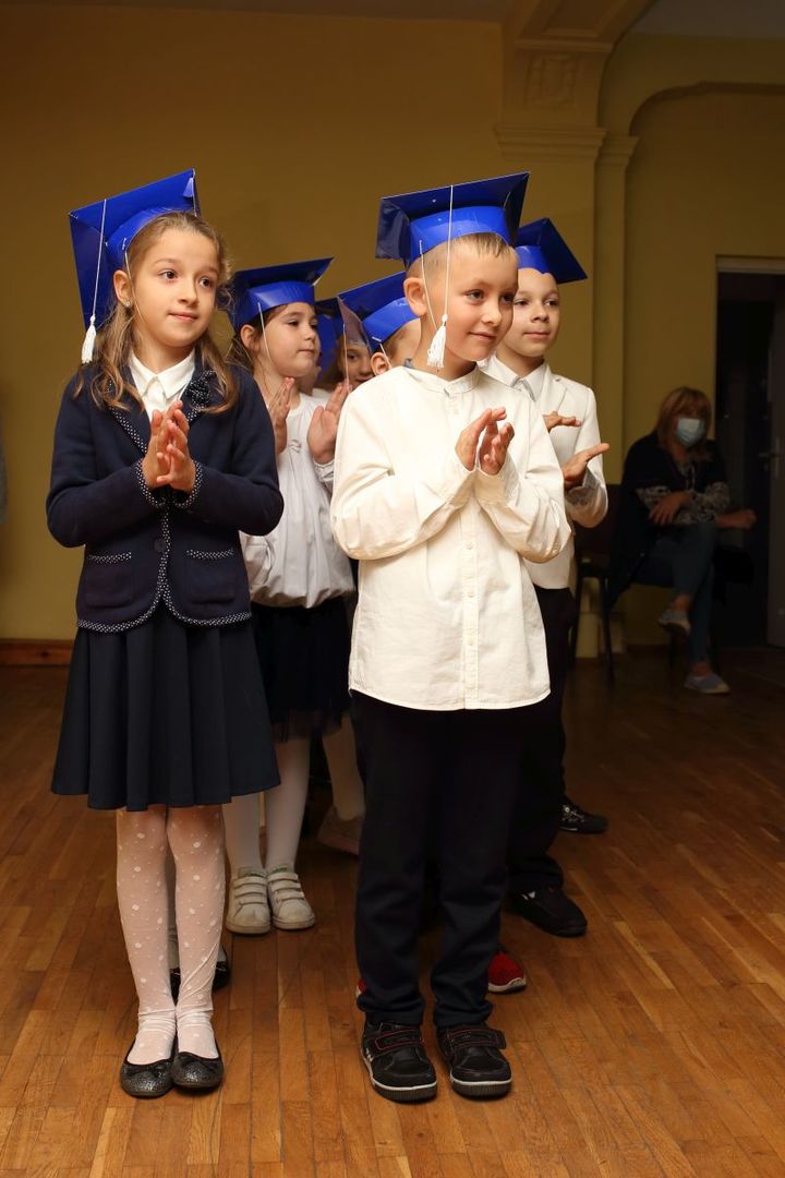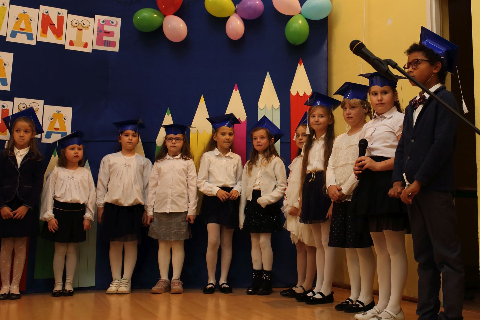 Uroczyste ślubowanie odbyło się w auli szkoły. Dzieci rozpoczęły uroczystość wspaniałym pokazem artystycznym. Mimo stresu związanego z pierwszym publicznym wystąpieniem, dzieci świetnie sobie poradziły. Udowodnili, że są gotowi stać się stuprocentowymi uczniami naszej szkoły, a obecność zaproszonych gości, rodziców, nauczycieli i uczniów klasy II i III dodała wyjątkowej oprawy tej uroczystości.