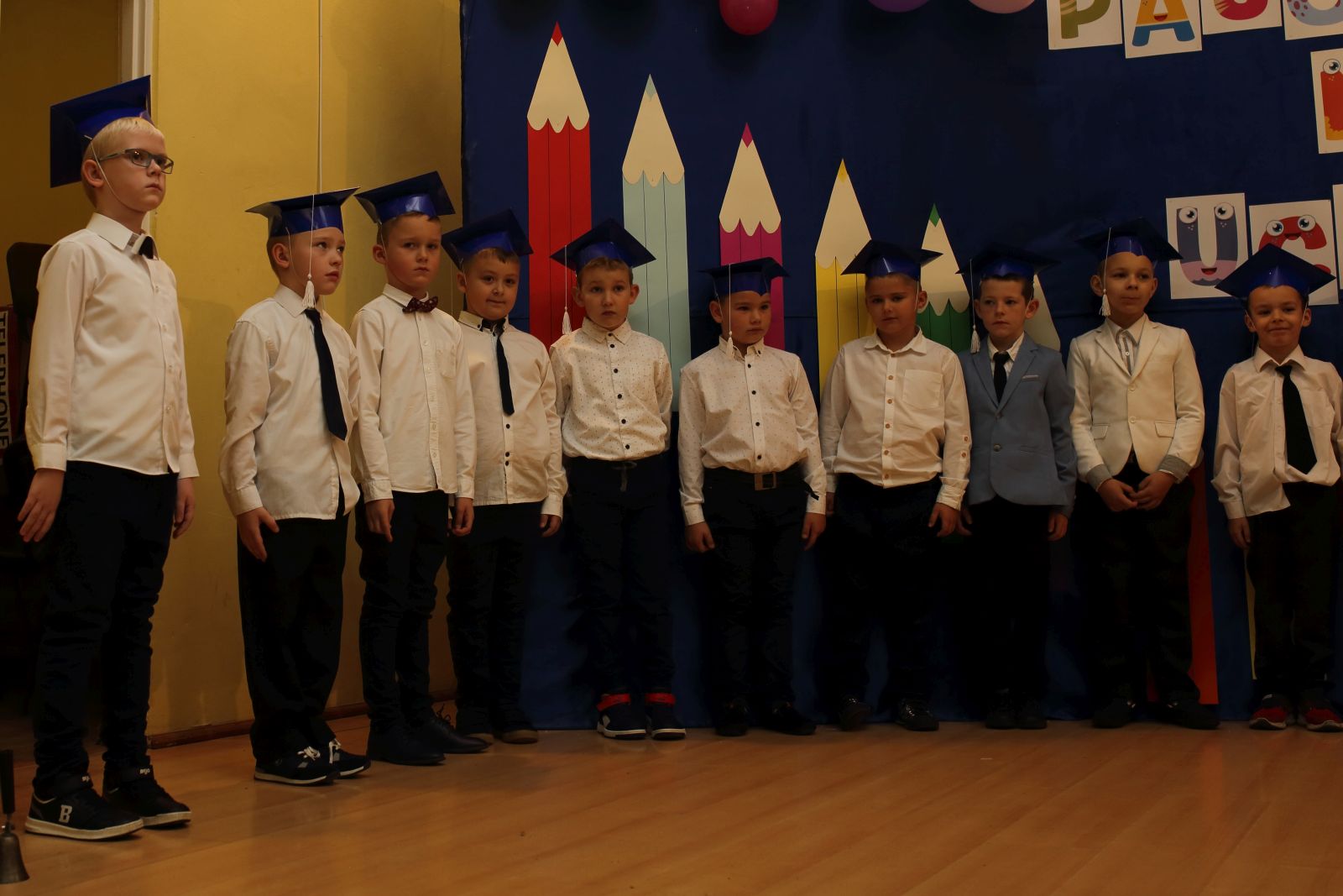 Po części artystycznej nastąpiło długo oczekiwane ślubowanie i pasowanie na ucznia klasy pierwszej. Dyrektor szkoły, pan Jacek Adamski, dokonał ceremonii pasowania dużym piórem wypowiadając słowa: Pasuję Cię na ucznia klasy pierwszej Szkoły Podstawowej w Zarębie.