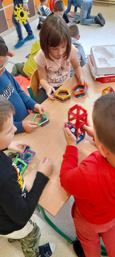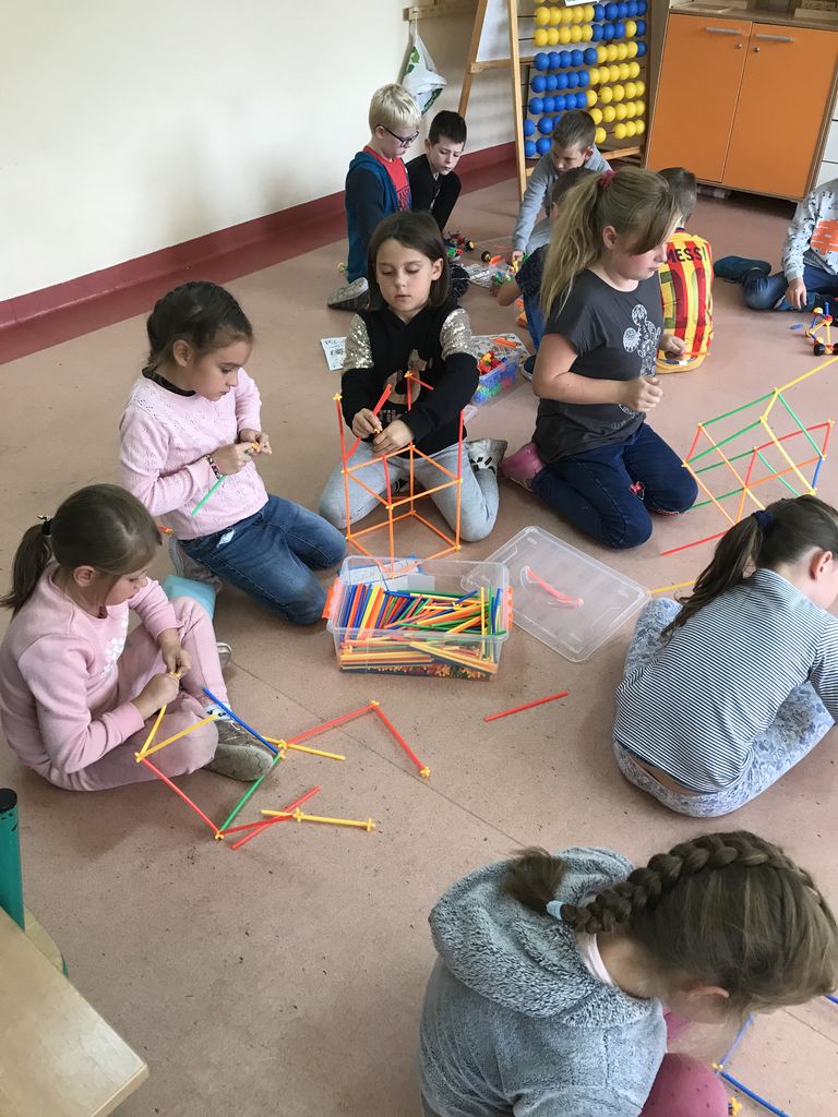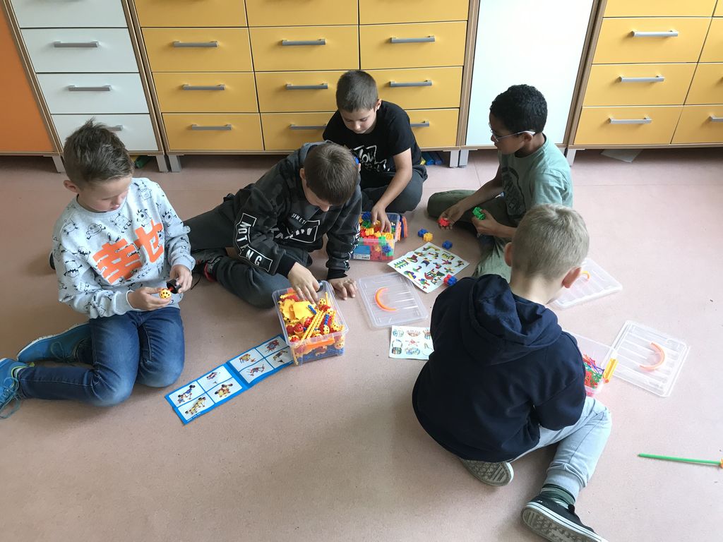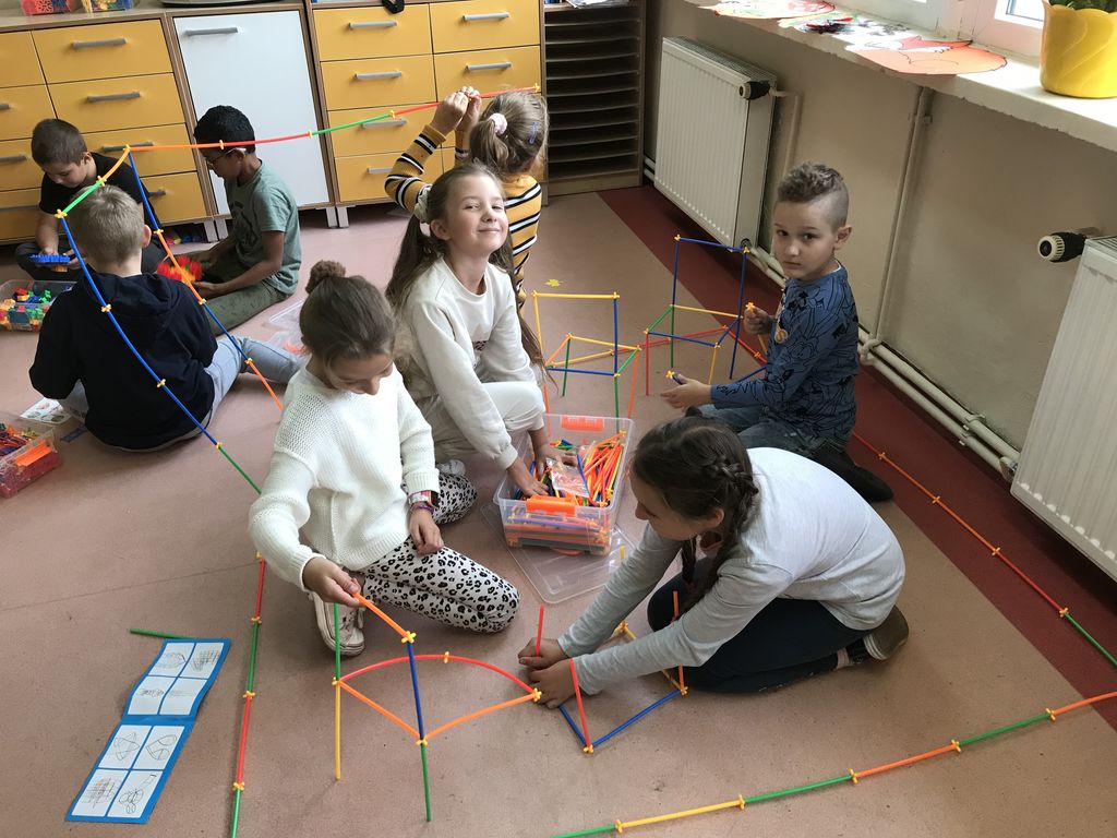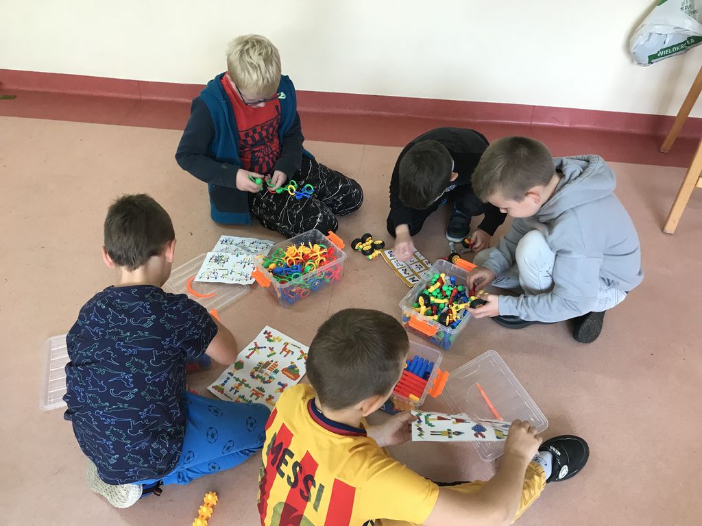 W klasach młodszych dużym zainteresowaniem cieszą się klocki konstrukcyjne, z których każdy może zbudować wymarzony projekt. O tym, że klocki są atrakcyjne dla uczniów, świadczy fakt, iż zabawa nie odbywa się tylko na zajęciach, ale jest także kontynuowana podczas przerw. Bardzo się cieszymy, że od najmłodszych lat możemy wspierać rozwój najmłodszych uczniów poprzez zajęcia z wykorzystaniem kreatywnych pomocy.