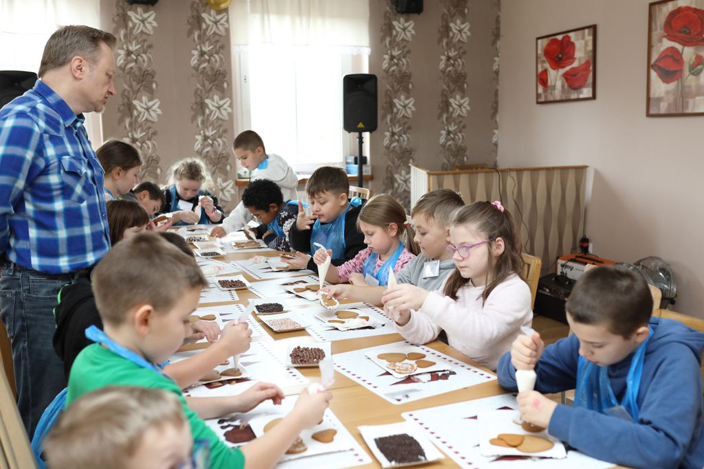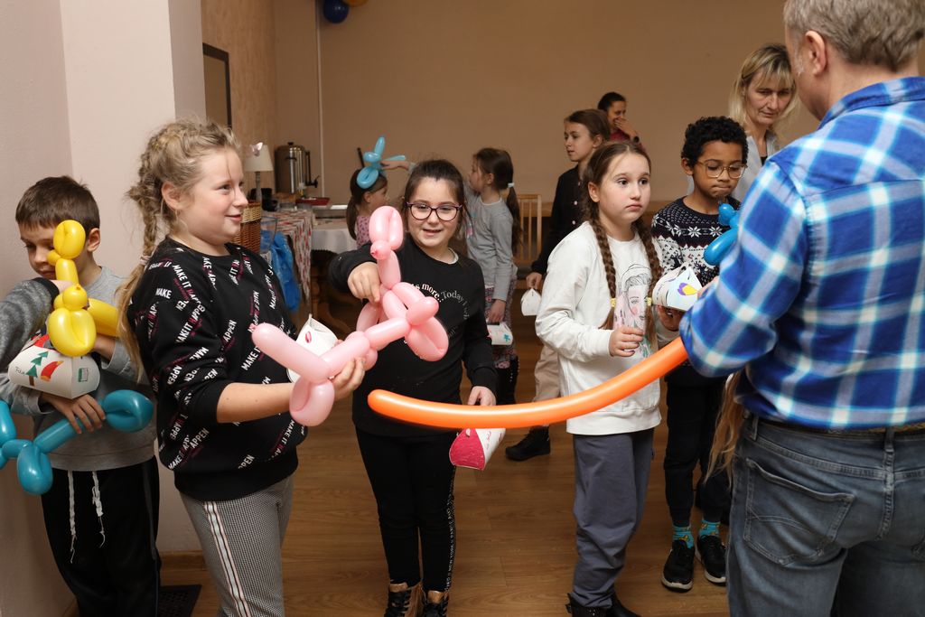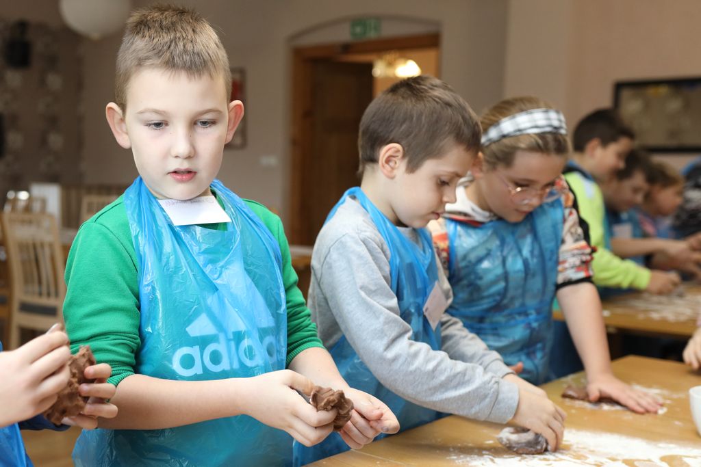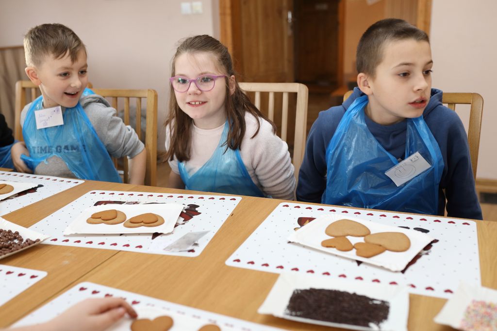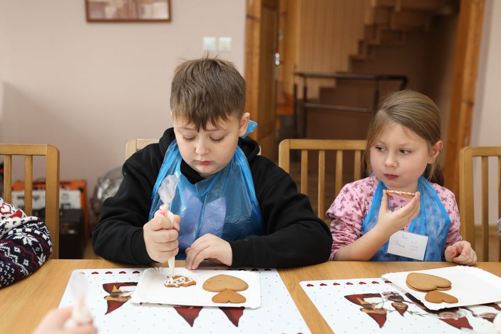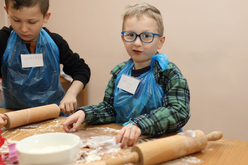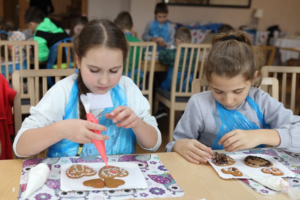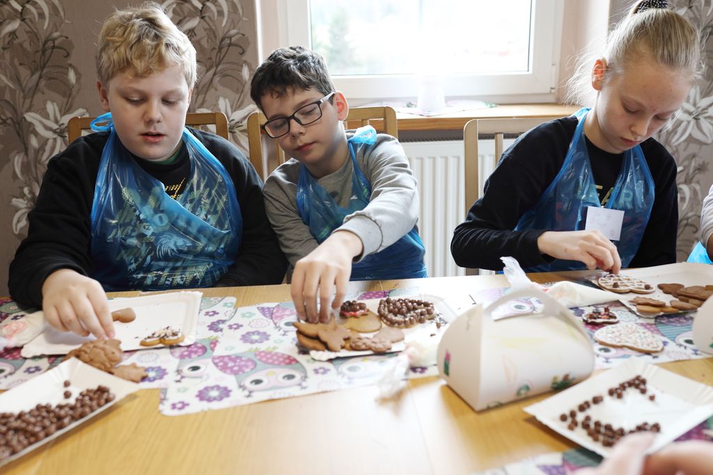 Uczniowie zapoznali się z historią pieczenia pierników, sami wyrabiali i wałkowali ciasto oraz wycinali pierniczki, a następnie je lukrowali i ozdabiali. Małe, lukrowane dzieła sztuki zostały zapakowane przez dzieci w samodzielnie pomalowane pudełka. Uczniowie mieli też okazję wspólnie, razem z organizatorami tych świątecznych warsztatów, pośpiewać pastorałki. Na zakończenie niespodzianką były balony, z których pani Marta wyczarowała kolorowe zwierzątka.