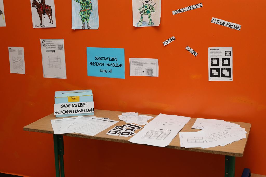 W tym dniu na korytarzach rozmieszczone były stoliki z różnego typu zadaniami. Łamacze głów mogli wśród nich znaleźć sudoku, kakuro (krzyżówki liczbowe), obrazki logiczne i architekta. Chętni uczniowie rozwiązywali zadania, podpisywali je i wrzucali do 1 z 3 pudełek ustawionych w szkole. Za prawidłowe rozwiązanie łamigłówki można było otrzymać upominek ufundowany przez Radę Rodziców. Nad przebiegiem dnia czuwał szkolny wolontariat.