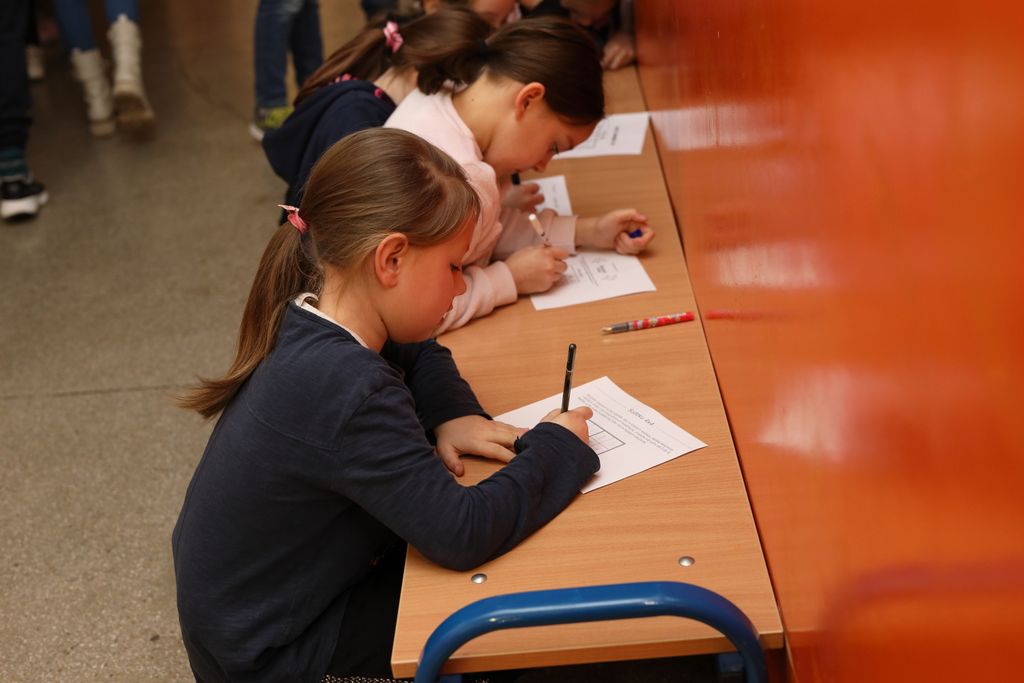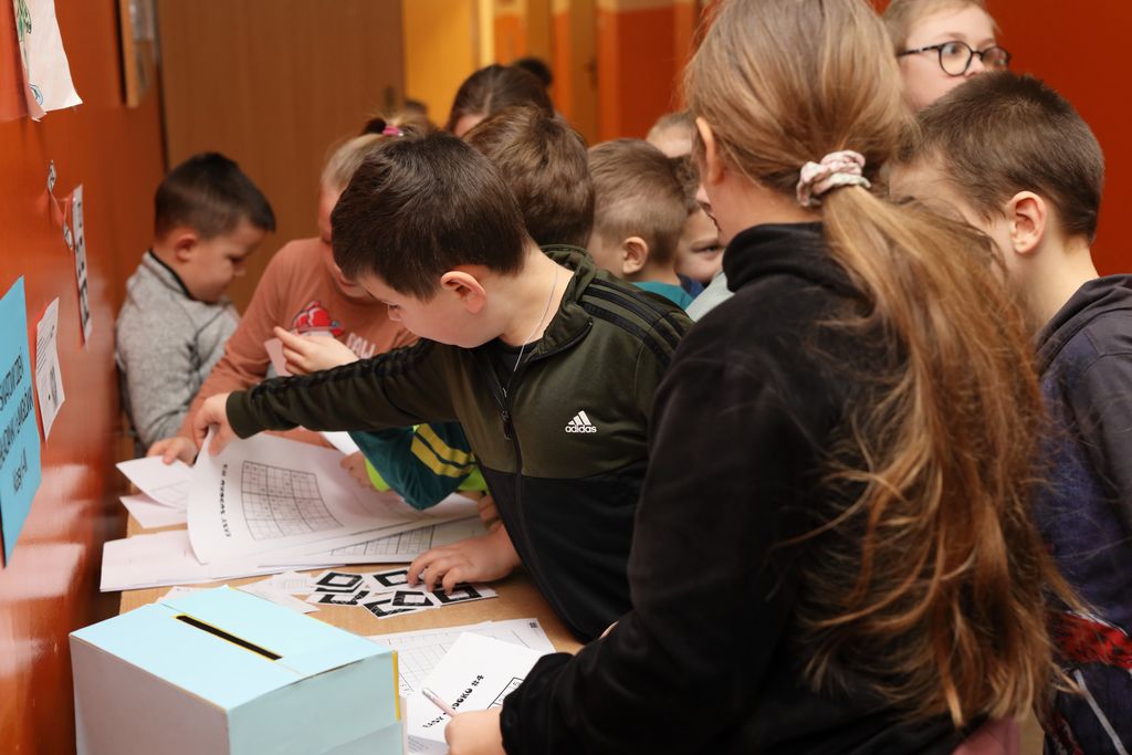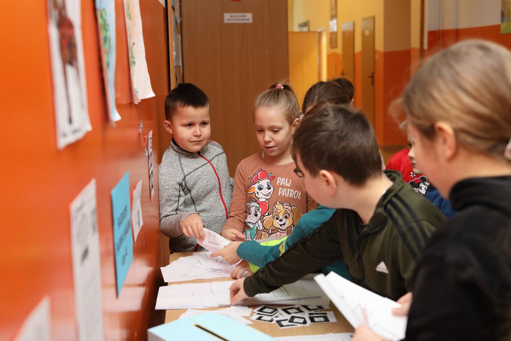 Chętnych dzieci do rozwiązywania łamigłówek nie brakowało, nawet uczniowie klasy I próbowali swoich sił w tych szkolnych potyczkach. Wiele osób rozwiązywało po kilka, a nawet kilkanaście zadań.