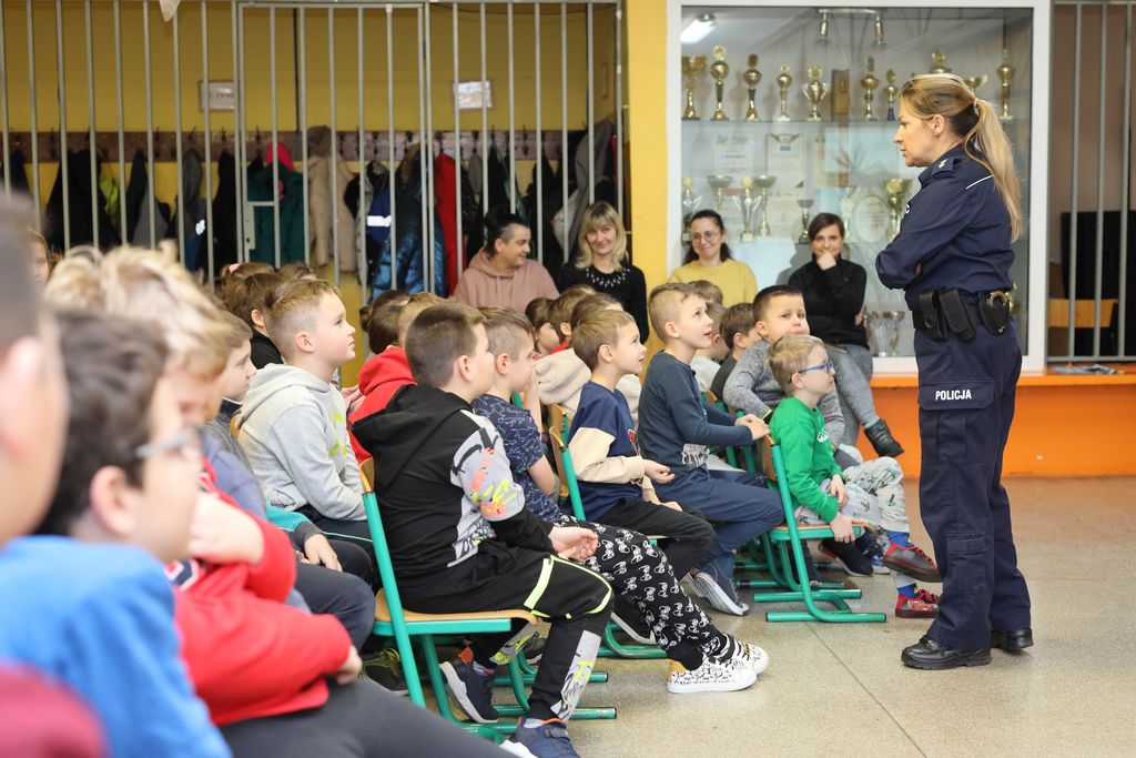 Dnia 3 lutego gościliśmy w murach naszej szkoły przedstawicieli policji. W związku ze zbliżającymi się feriami, funkcjonariusze z lubańskiej komendy przypomnieli uczniom zasady zachowania się podczas zimowisk, zasady korzystania ze stoku narciarskiego oraz zwrócili uwagę na niebezpieczeństwo związane z wchodzeniem na zamarznięte zbiorniki wodne. Czas ferii to także czas przebywania w domu, często bez opieki dorosłych, zaproszeni goście przypomnieli dzieciom i młodzieży o zasadach zachowania wobec nieznajomych, a także o niebezpieczeństwach mogących czyhać w internecie.