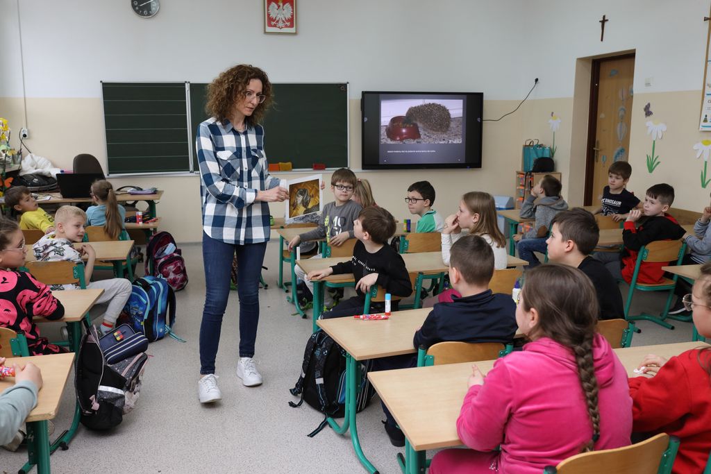 To i wiele jeszcze innych cennych informacji dowiedziały się dzieci w czasie warsztatów edukacyjnych pt. „W iglastej sukience przez liście – o jeżu i jego trybie życia” prowadzonych przez Agnieszkę Łasicę kierownika Regionalnego Centrum Edukacji Ekologicznej Oddziału Miejskiej i Powiatowej Biblioteki Publicznej w Lubaniu.
