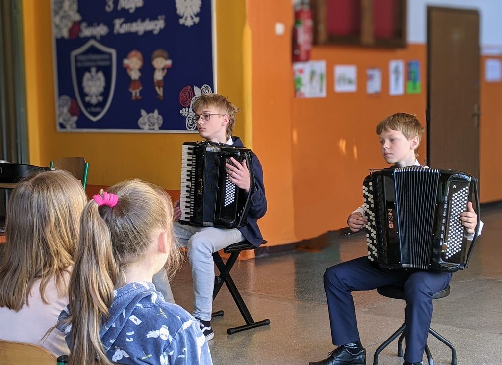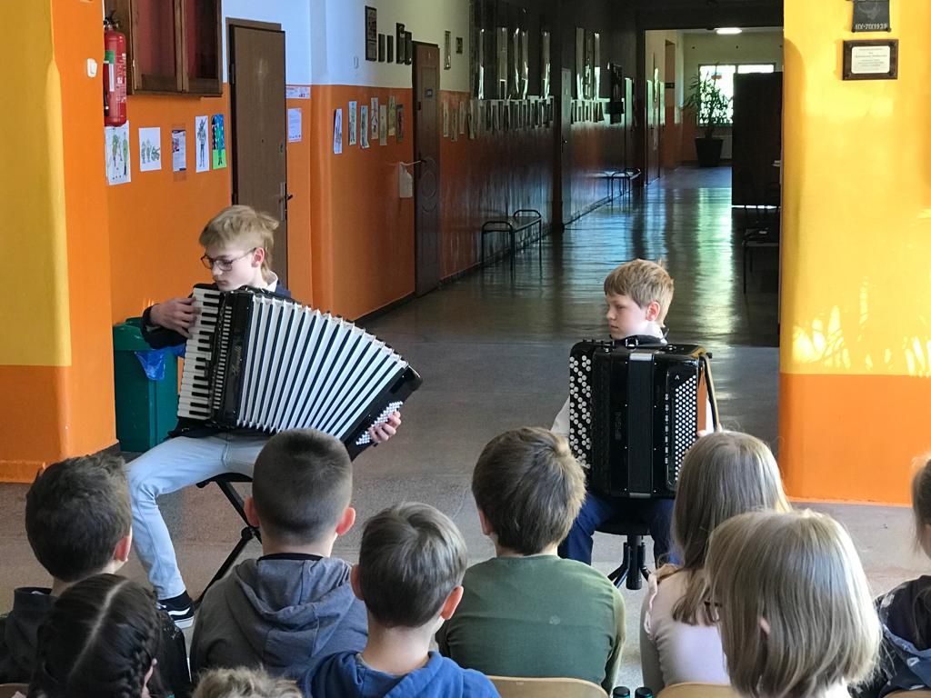 Na akordeonie gościnnie zagrali Mikołaj Mocny- uczeń PSM kl. V/VI- akordeon klawiszowy oraz Adam Ossowski – uczeń kl. V/VI PSM na akordeonie guzikowym.