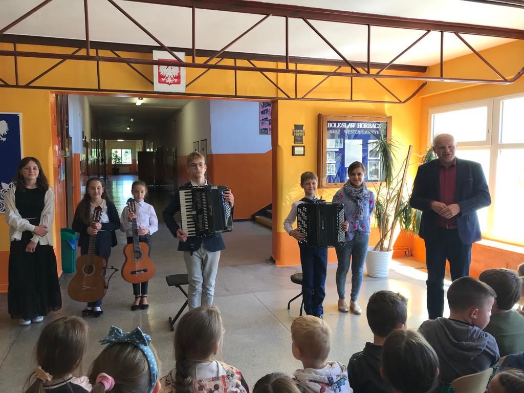 We wtorek 09.05.2023 r. w naszej szkole mogliśmy posłuchać pięknej muzyki w wykonaniu trzech naszych uczennic oraz dwóch zaproszonych gości. Wszyscy wykonawcy są uczniami Państwowej Szkoły Muzycznej I st. im. Oskara Kolberga w Lubaniu.