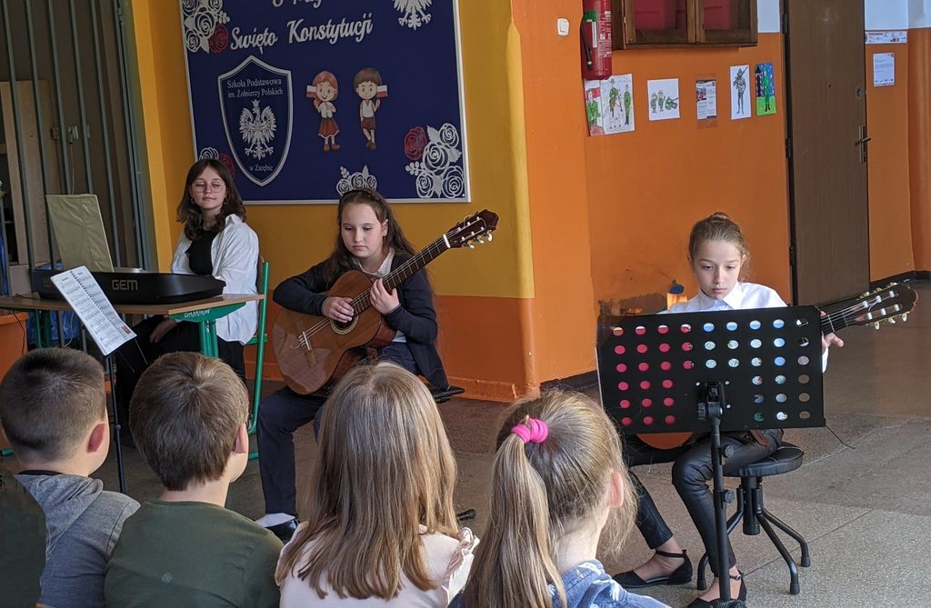 Na gitarze zagrały dla nas Maja Dudzik z kl. II oraz Hanna Zięba z kl. II.