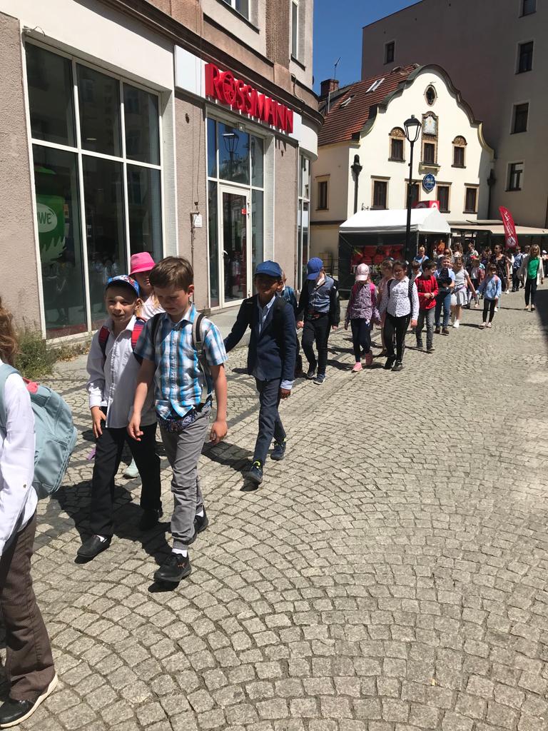 Po spektaklu uczniowie wraz z opiekunami wybrali się na spacer ulicami Jeleniej Góry. Podczas spaceru do wycieczki dołączyło dwoje rowerzystów, okazalo się, że to aktorzy z teatru, którzy rozpoznali grupę.