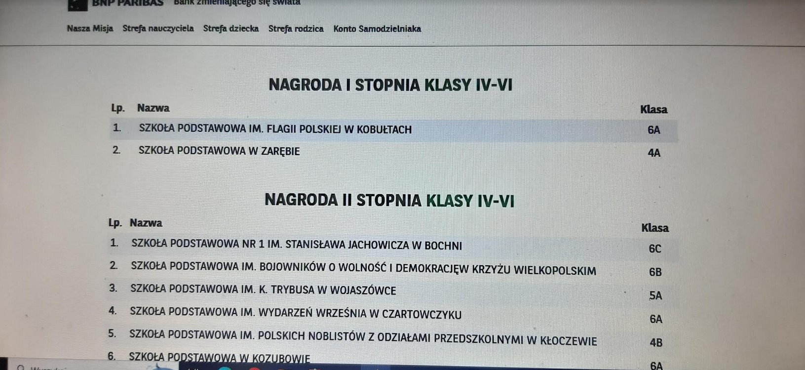 Prace konkursowe były oceniane w dwóch kategoriach wiekowych, uczniów klas I-III oraz uczniów klas IV-VI. Udało się – otrzymaliśmy nagrodę główną w postaci kwoty 3000 zł na sfinansowanie jednodniowej wycieczki edukacyjnej.