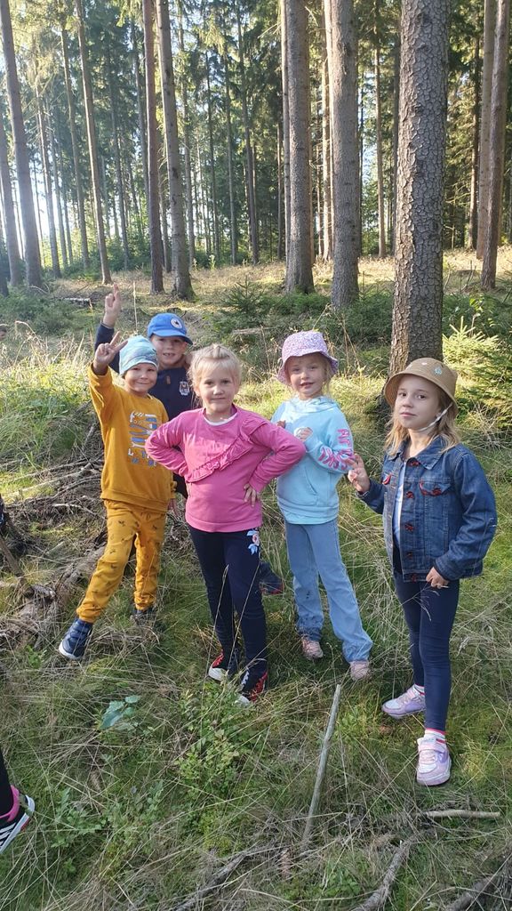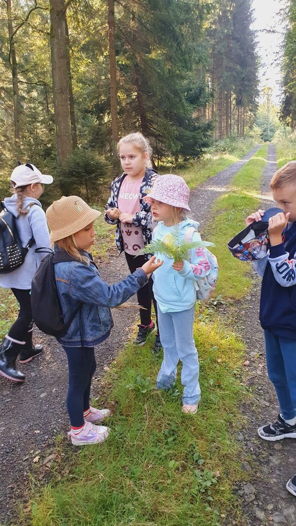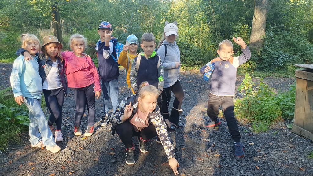 Pierwszaki poznały zasady prawidłowego zachowania się w lesie. Obserwując przyrodę, zauważyli zmiany, jakie zachodzą jesienią. Poznali warstwową budowę lasu. Udało się usłyszeć śpiew ptaków, dostrzegli babie lato i huśtającego się pająka na pajęczynie rozpiętej między trawami, podświetlonej słońcem.
