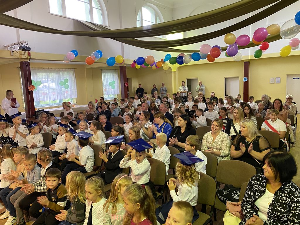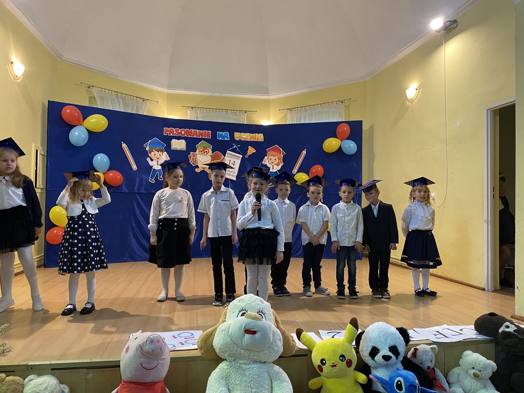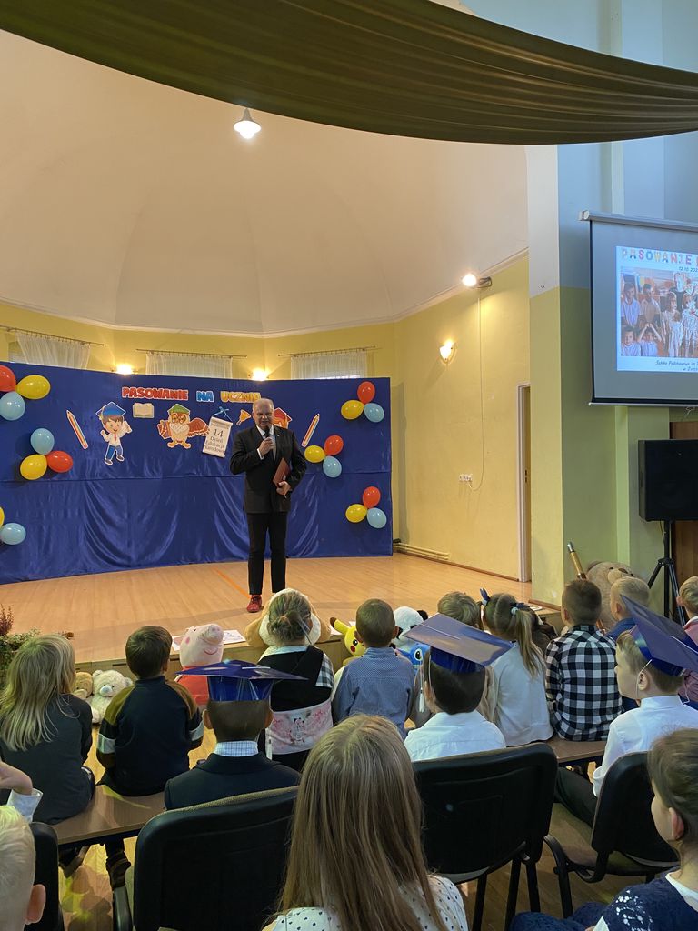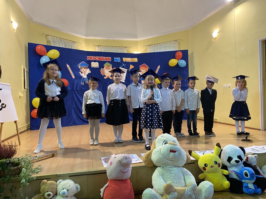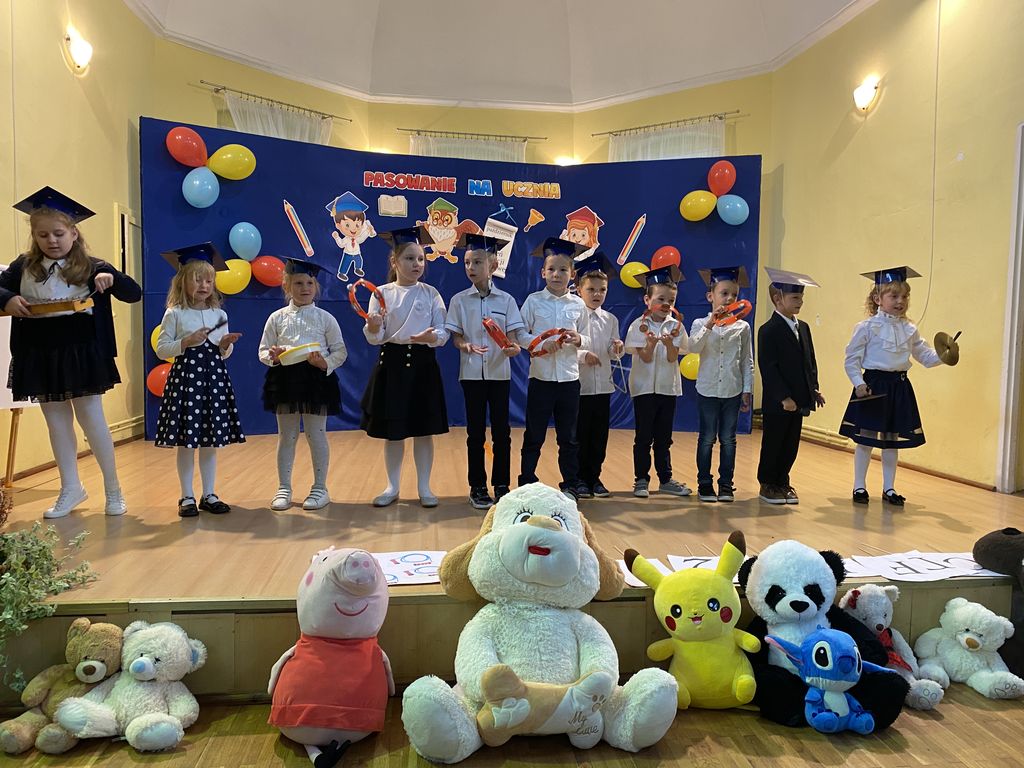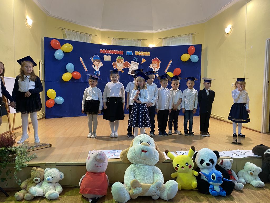 Po ślubowaniu dyrektor szkoły Jacek Adamski dokonał symbolicznego pasowania na ucznia, tym samym włączając ich w społeczność szkolną. Wychowawczyni Ewa Russjan rozdała uczniom legitymacje szkolne. Na koniec uroczystości najmłodsi dostali od rodziców oraz władz samorządowych upominki, które będą służyły w dalszej edukacji.