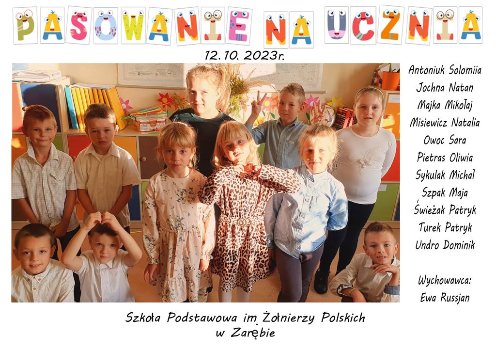 Na tę uroczystość zaproszeni byli goście: Wójt Gminy Siekierczyn Dariusz Furdykoń, Przewodniczący Rady Gminy Siekierczyn Piotr Kret, Przewodnicząca Rady Rodziców Hanna Łozińska, Dyrektor Przedszkola w Zarębie Sabina Filipczak z najstarszą grupą przedszkolaków oraz cała społeczność szkolna z gronem pedagogicznym. Swoją obecnością zaszczycili nas także rodzice dzieci, których pociechy dzisiaj miały swoje święto. Pierwszaki w pięknych galowych strojach przedstawiły program artystyczny. Pokazały w swoim wystąpieniu, że są gotowe złożyć ślubowanie. W niezwykle podniosłej atmosferze, przed pocztem sztandarowym, uczniowie klas pierwszych przyrzekli godnie reprezentować swoją szkołę, swym zachowaniem i nauką sprawiać radość rodzicom i nauczycielom.
