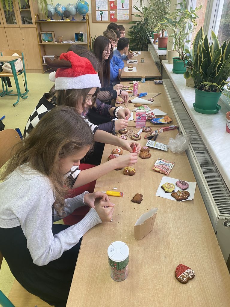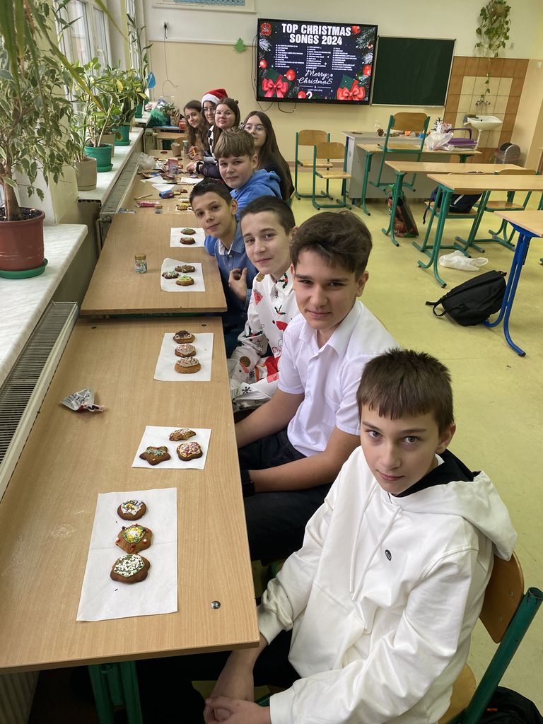 Ze Świętami Bożego Narodzenia wiąże się wiele pięknych a zarazem wyjątkowych tradycji i zwyczajów. Jednym z nich jest wigilia. Dlatego też uczniowie ze wszystkich klas wraz ze swoimi paniami zasiedli przy pięknie udekorowanych stołach, łamali się opłatkiem, składali sobie życzenia oraz wspólnie kolędowali.