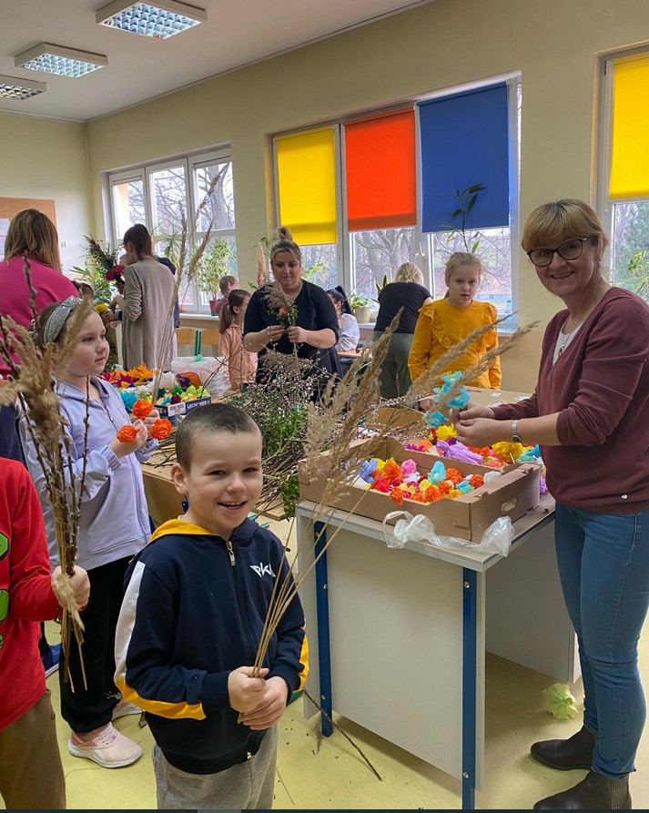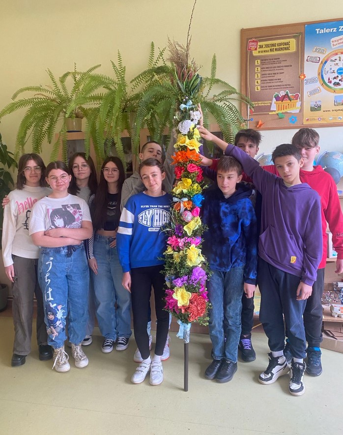 W środę w naszej szkole odbyły się warsztaty robienia palm wielkanocnych. Uczniowie klas I-IV mieli okazję nauczyć się tradycyjnego rzemiosła tworzenia palm. Niektórzy pracowali nad swoimi palmami samodzielnie, inni korzystali z pomocy nauczycieli, rodziców czy niezastąpionych babć. Klasa VII również podjęła wyzwanie wykonania tradycyjnej palmy wielkanocnej. Było to nie tylko świetne doświadczenie i okazja do nauki, ale również miło spędzony czas.