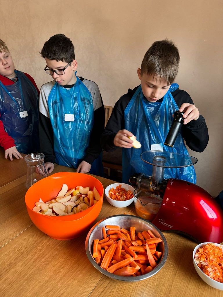 Uczestnicy samodzielnie przygotowywali i komponowali pizze, używając ulubionych składników, a w międzyczasie wyciskali soki z owoców i warzyw.