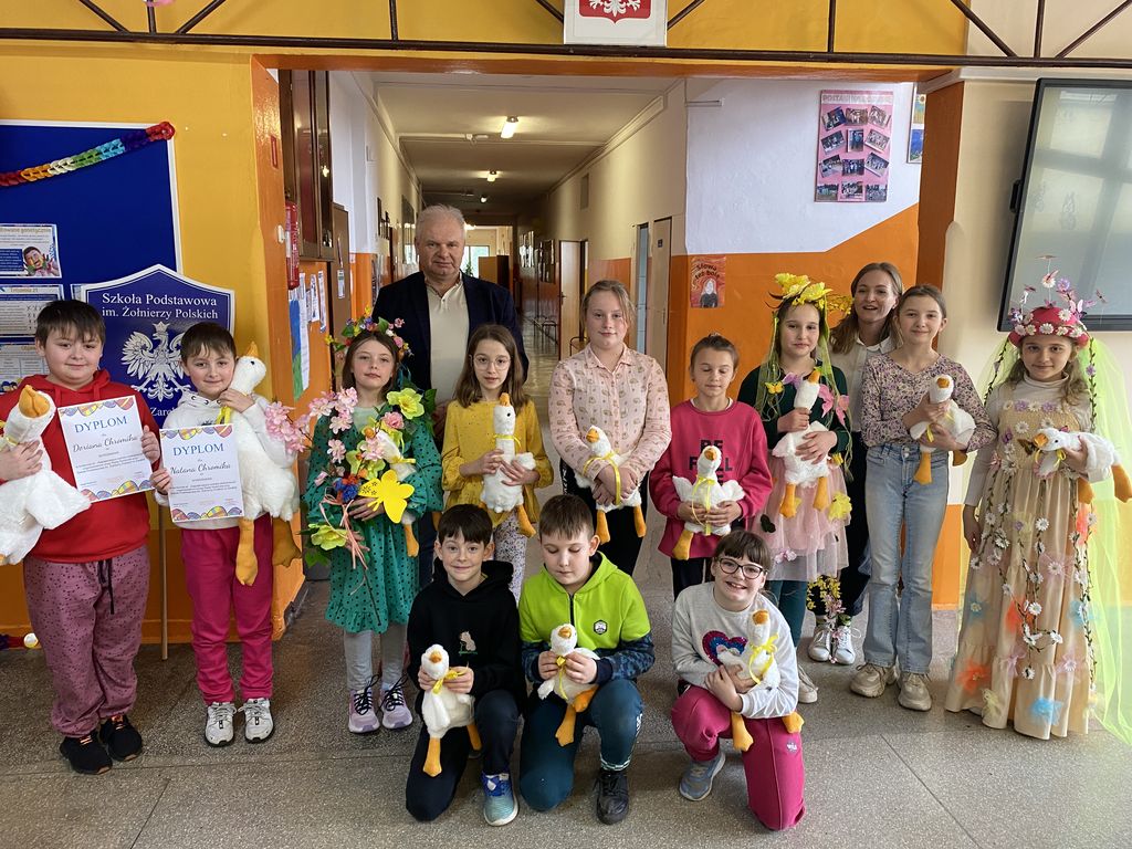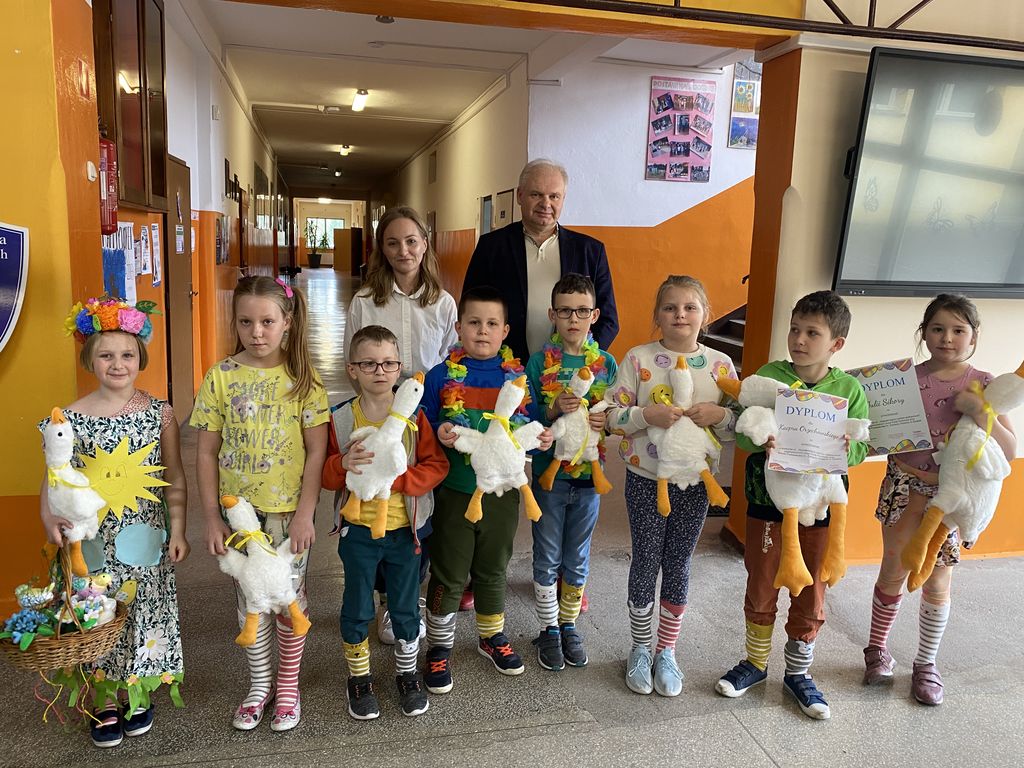 Kolejnym punktem dnia było spotkanie całej społeczności szkolnej na przeglądzie mody wiosennej. Była to również doskonała okazja, by rozstrzygnąć konkurs na najpiękniejszą ozdobę wielkanocną. Każdy z uczestników został doceniony za zaangażowanie i otrzymał upominek ufundowany przez Radę Rodziców.