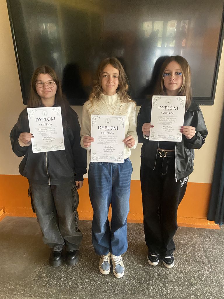 W kategorii klas VII-VIII drużyna w składzie: Karina Gajewska, Maja Bukała oraz Viola Józefów uplasowała się na I miejscu.
