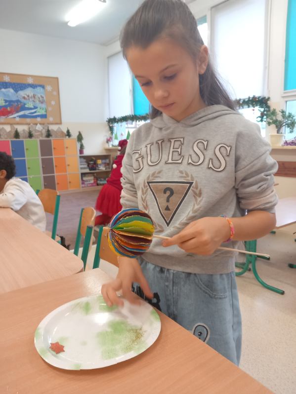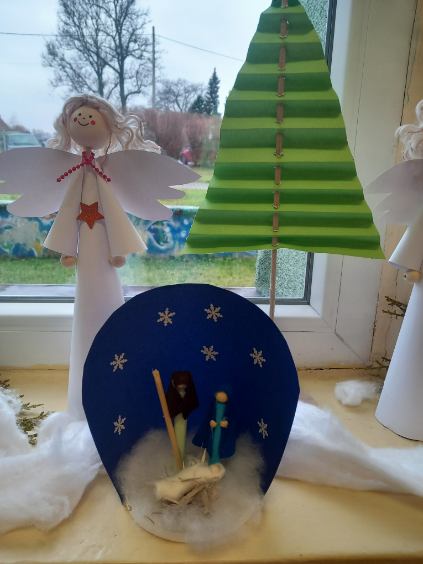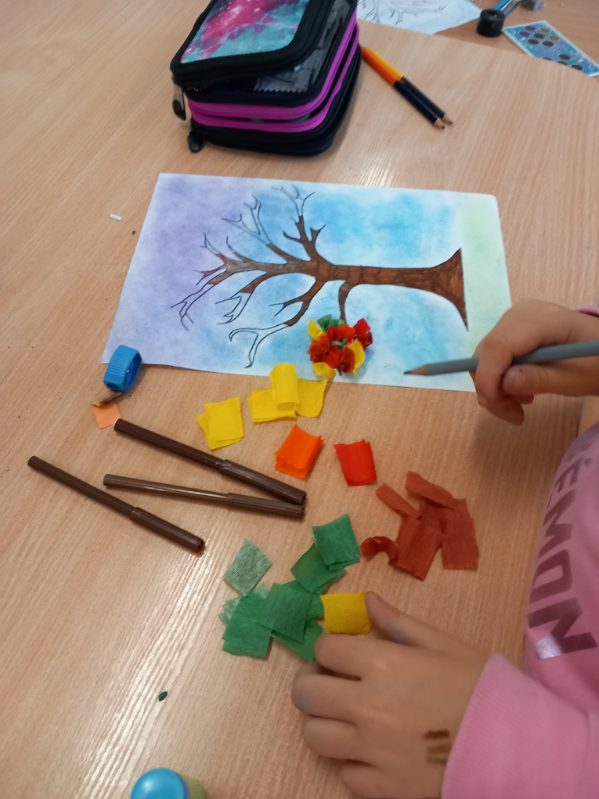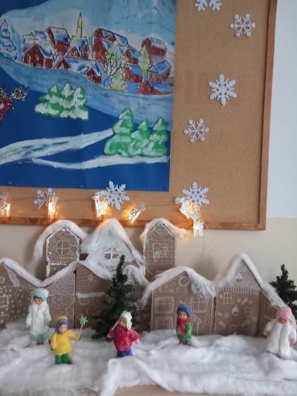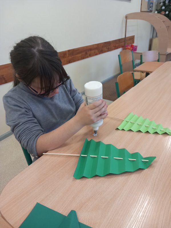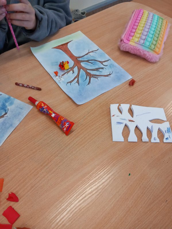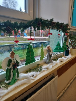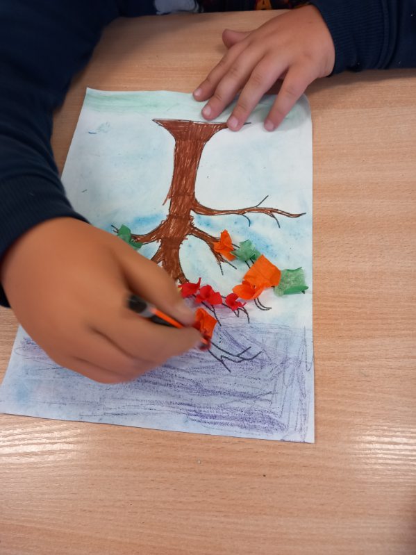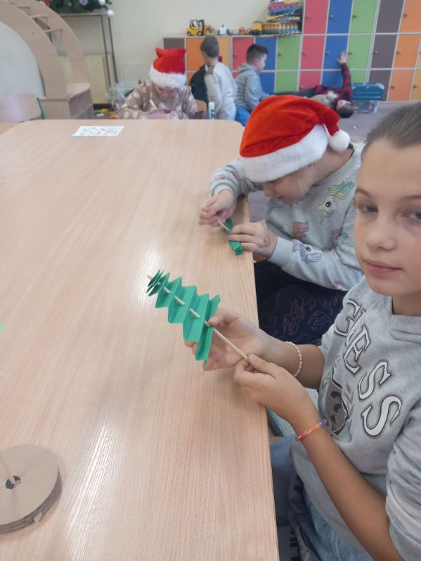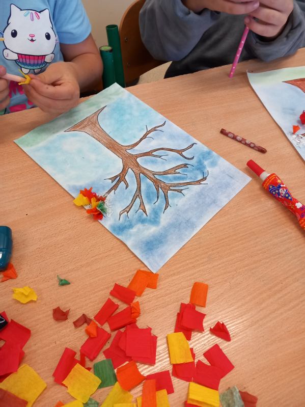 We wrześniu i październiku większość czasu spędzaliśmy na powietrzu, dzieci brały udział m.in.w zabawach ruchowych.Kiedy zmieniła się pogoda wykonywaliśmy prace jesienne dekorując świetlicę. Jesiennie zrobiło się na gazetce świetlicowej i na oknach. W grudniu dzieci przygotowały ozdoby choinkowe m.in.bombki papierowe, którymi udekorowały choinkę. Następnie zrobiły: Mikołaje z papieru, choinki, aniołki, szopki Bożego Narodzenia, kolorowe obrazki malowane farbami, kredkami czy flamastrami. Powstały ciekawe prace plastyczne, które wspólnie umieściliśmy na tablicy w sali. Zajęcia rozbudziły radosny nastrój w związku ze zbliżającymi się świętami. Została również wykonana świąteczna dekoracja świetlicy.