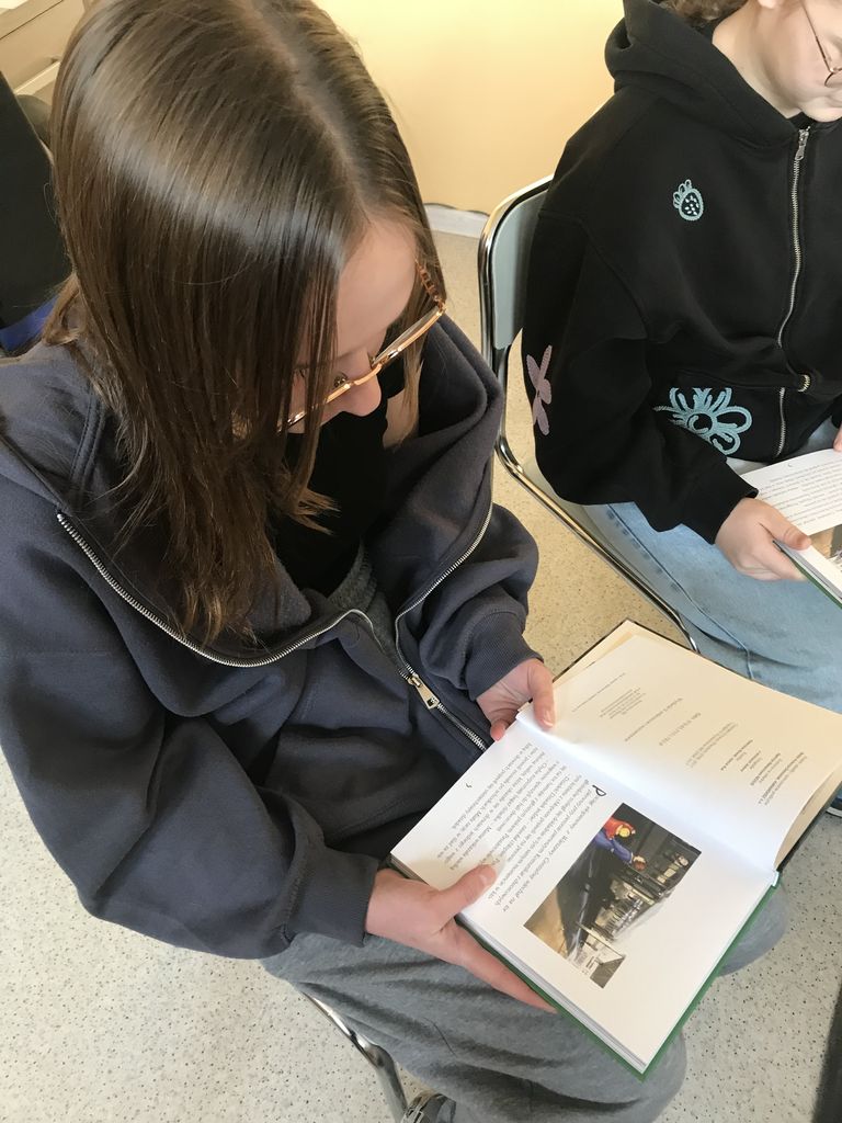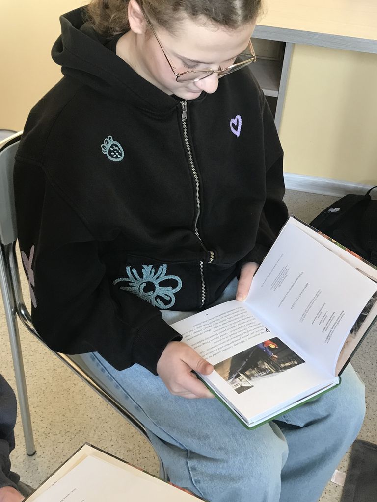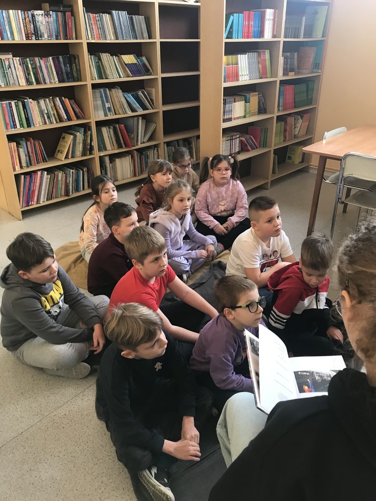 Uczniowie klasy 7 wzięli udział w projekcie edukacyjnym pt. „Przerwy z książką”. Na wstępie młodzież zapoznała się z książkami zakupionymi do biblioteki w ramach NPRC. Wybrali po jednej pozycji książkowej, a następnie czytali w bibliotece na przerwach fragmenty wybranych książek uczniom klas I-III. Uczniowie podczas realizacji projektu poznali nowości oferowane przez bibliotekę szkolną, mogli spróbować swoich sił w roli lektora, zachęcić słuchaczy do wypożyczenia książek, których fragmentów wysłuchali.