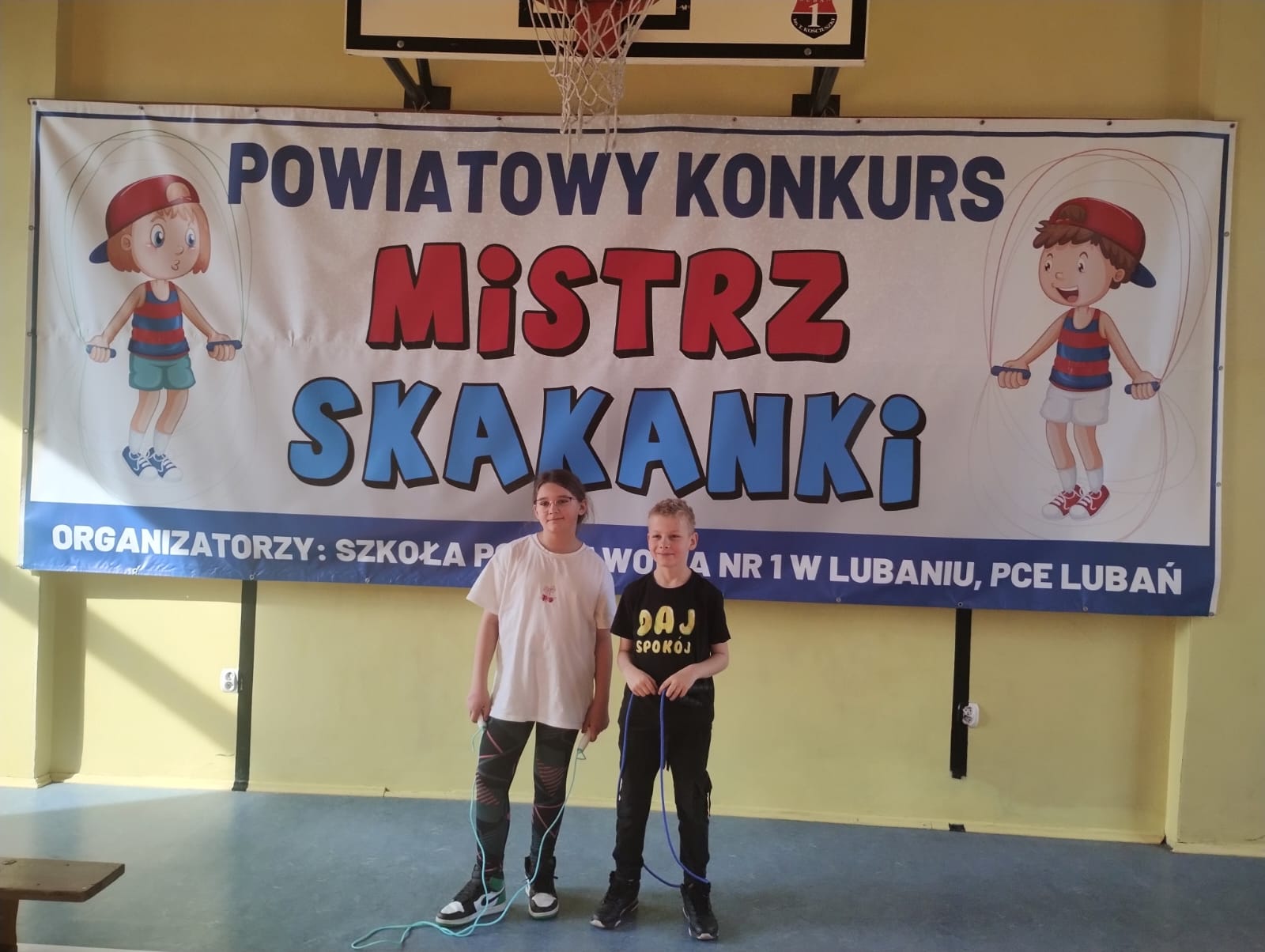 2 kwietnia br. uczniowie klasy III, Szymon Bindaszewski i Lena Boczarska, reprezentowali naszą szkołę w Powiatowym Konkursie "Mistrz skakanki".