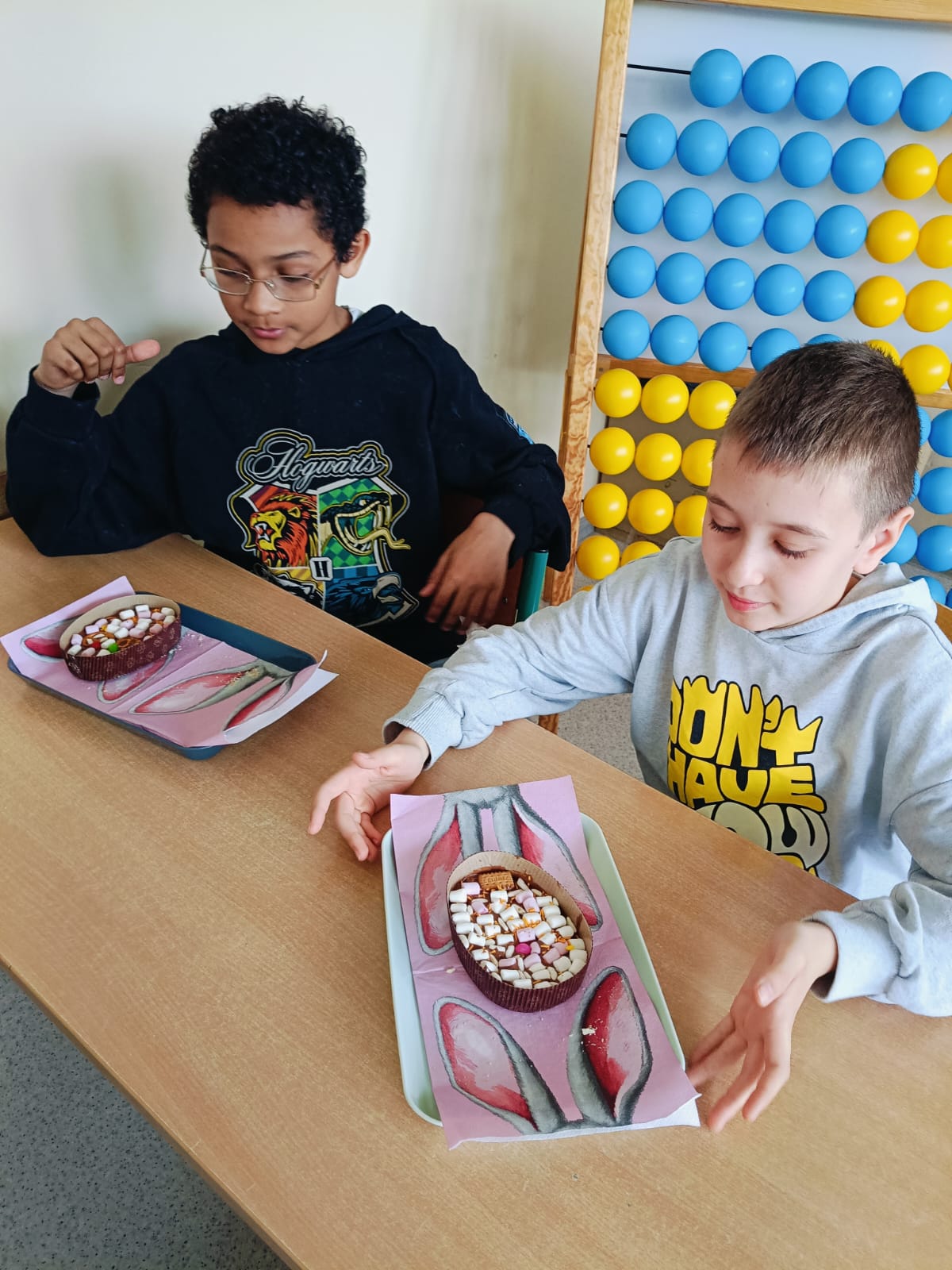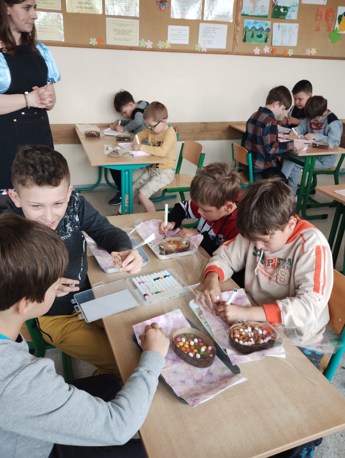 Punktem kulminacyjnym było samodzielne wykonanie czekoladowego jaja, które każdy z uczniów miał okazję udekorować według własnego pomysłu, korzystając z pysznych dodatków!