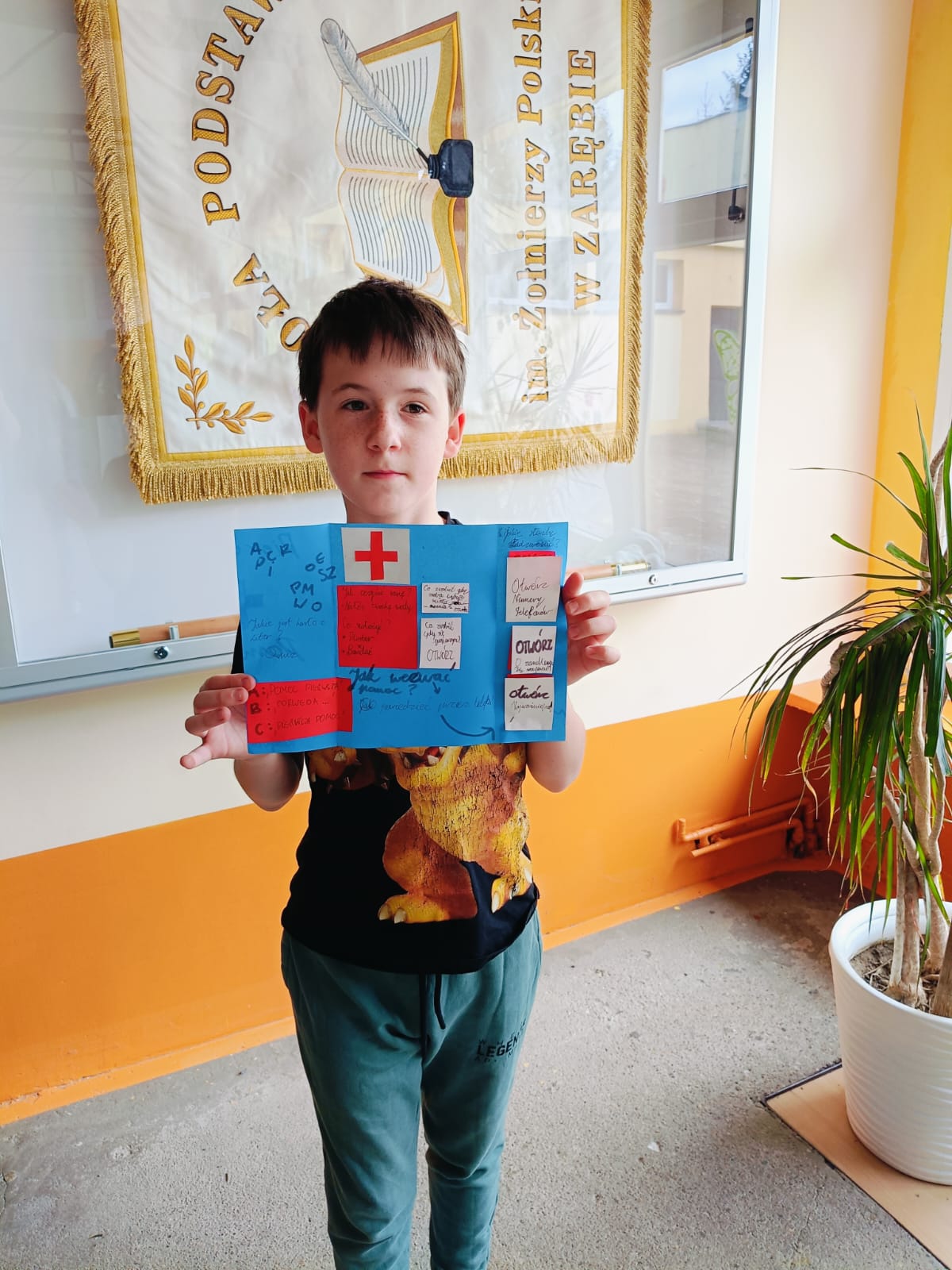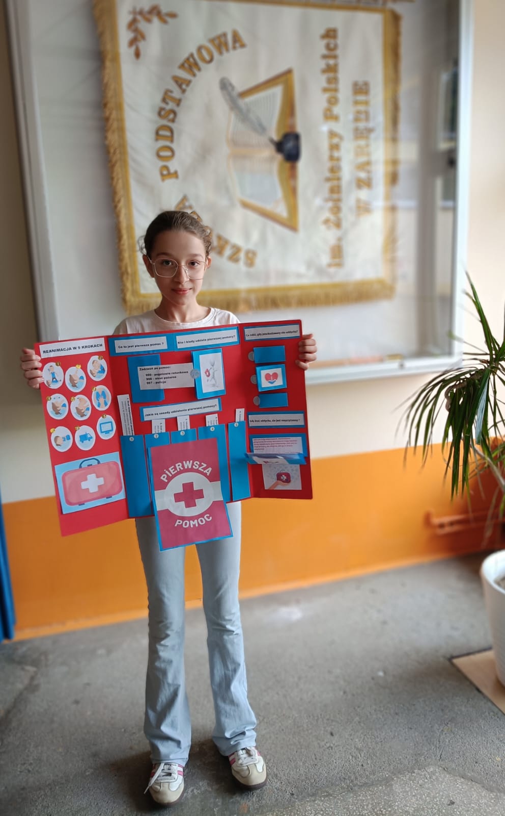 Starsze klasy przygotowały ciekawe i merytoryczne lapbooki – kolorowe książeczki z informacjami o zasadach pierwszej pomocy.