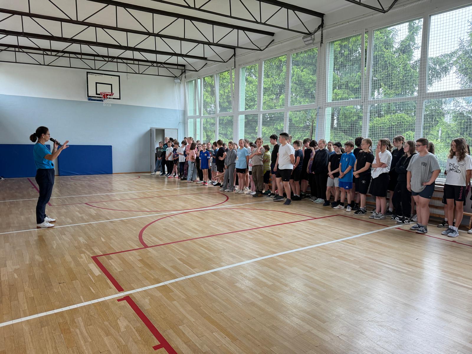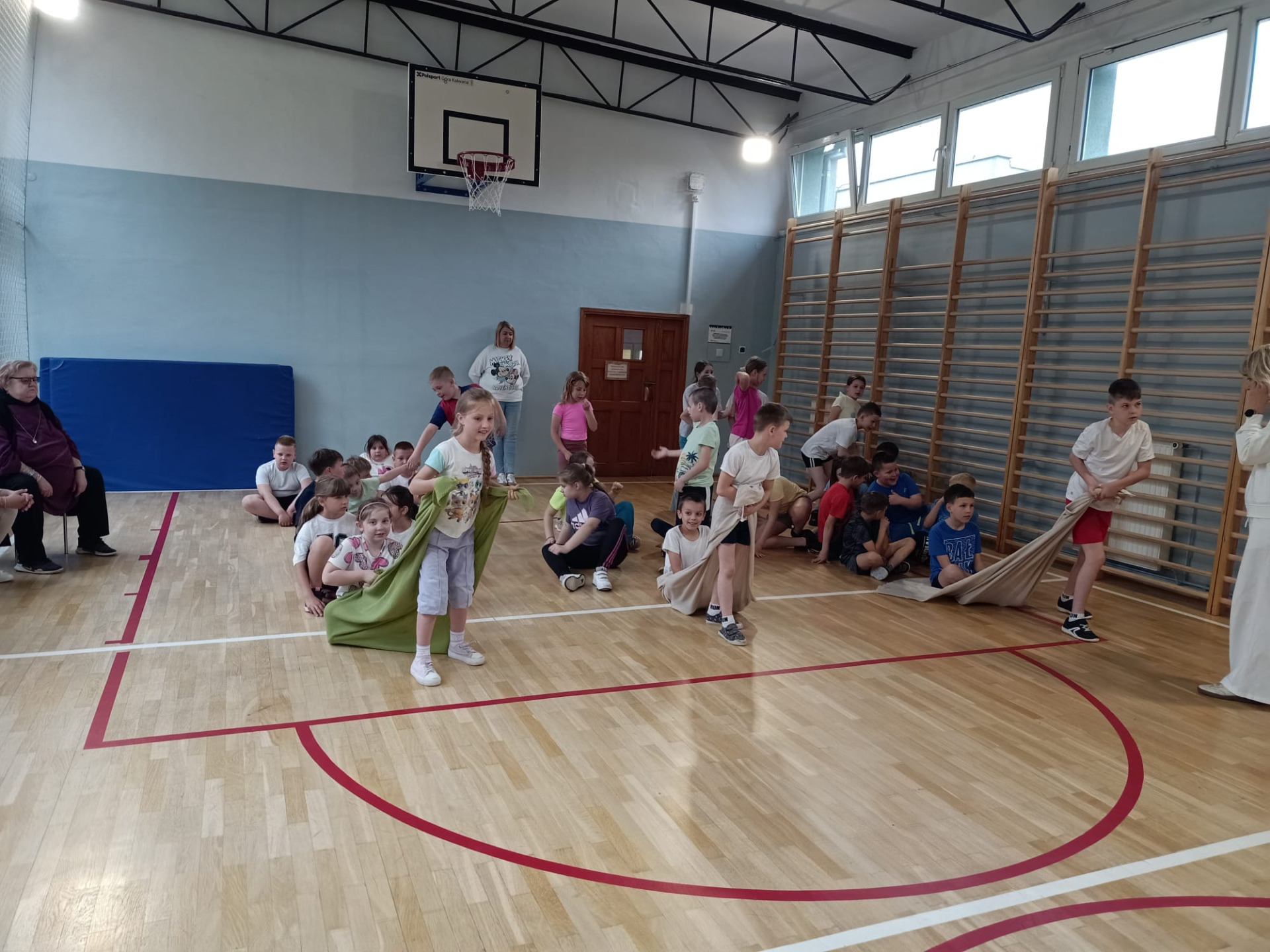 W piątek w naszej szkole obchodziliśmy Dzień Dziecka! Tradycyjnie świętowaliśmy na sportowo. Tym razem pogoda nie dopisała, dlatego wszystkie konkurencje i atrakcje odbyły się w szkole. Mimo to, radości i emocji nie zabrakło! Po sportowych zmaganiach czekały na nas pyszne kiełbaski zafundowane przez pana Andrzeja Adamczuka, popcorn i wata cukrowa – ufundowane przez Radę Rodziców.