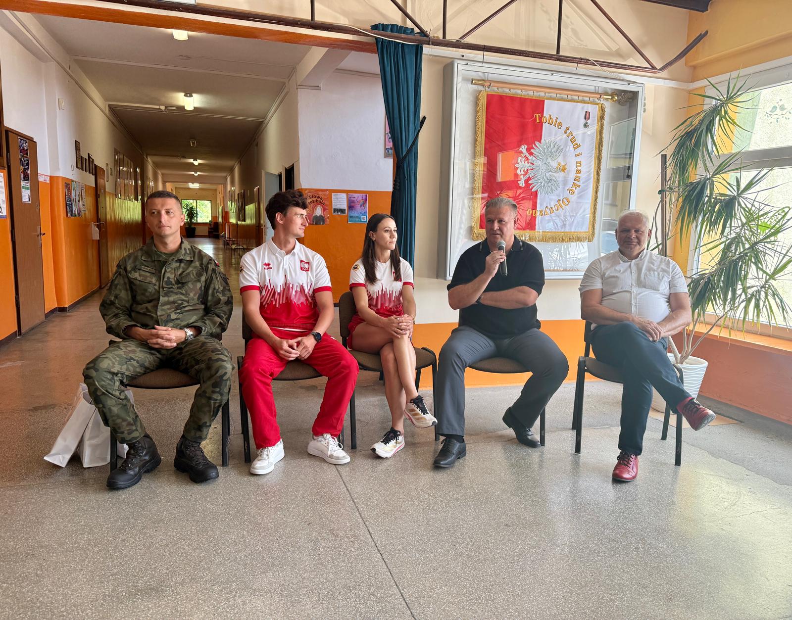 Dzięki inicjatywie płk dypl. rez. Włodzimierza Chupki i zaangażowaniu pani Jolanty Błasiak oraz współpracy z jednostkami wojskowymi, w tym z Centralnym Wojskowym Zespołem Sportowym w Poznaniu, mieliśmy zaszczyt gościć w murach naszej szkoły olimpijczyków: Dawida Tomalę – złotego medalistę Igrzysk Olimpijskich w Tokio w chodzie sportowym na dystansie 50 km, Marikę Popowicz-Drapałę – trzykrotną uczestniczkę Igrzysk Olimpijskich w biegach sprinterskich. Należy nadmienić, że olimpijczycy są również żołnierzami Wojska Polskiego.