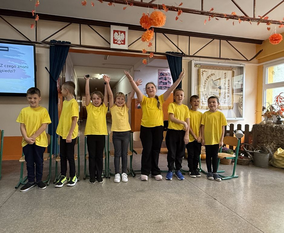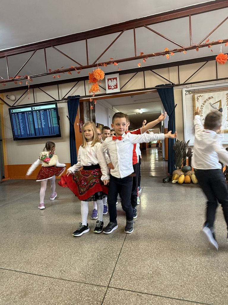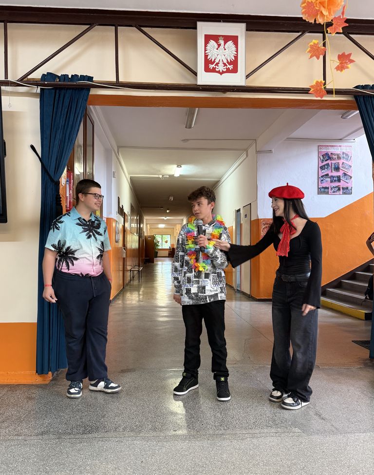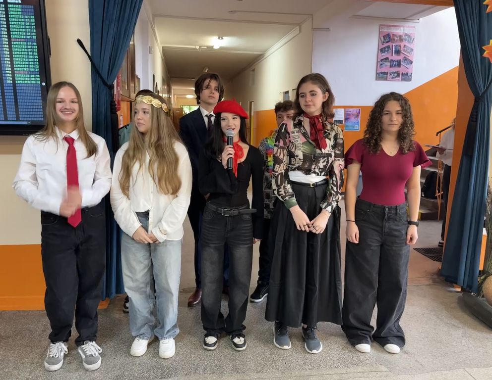 Hol szkolny zamienił się w terminal pasażerski z „bramkami” i „tablicą odlotów”. Uczniowie wyruszyli w artystyczną podróż po Europie, a każda klasa zaprezentowała inny kraj: od Polski, przez Belgię, Niemcy i Turcję, aż po Wielką Brytanię, Francję, Grecję i Włochy.