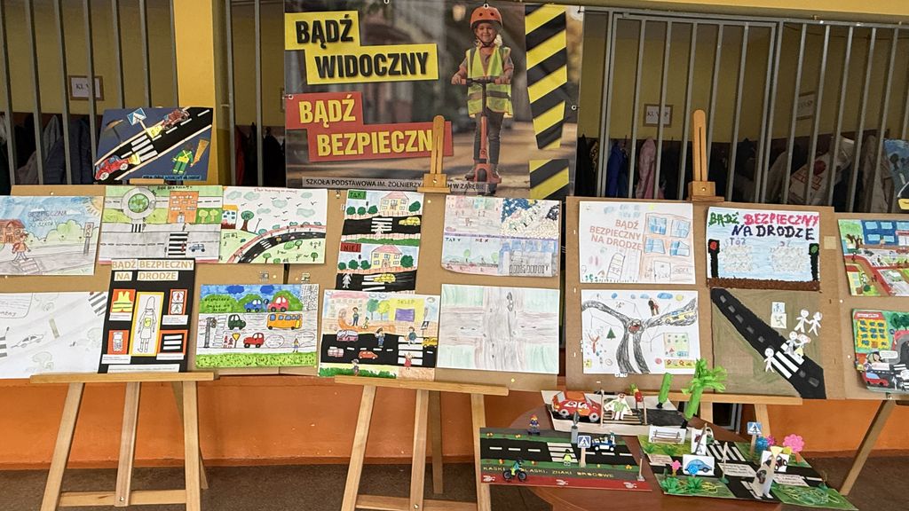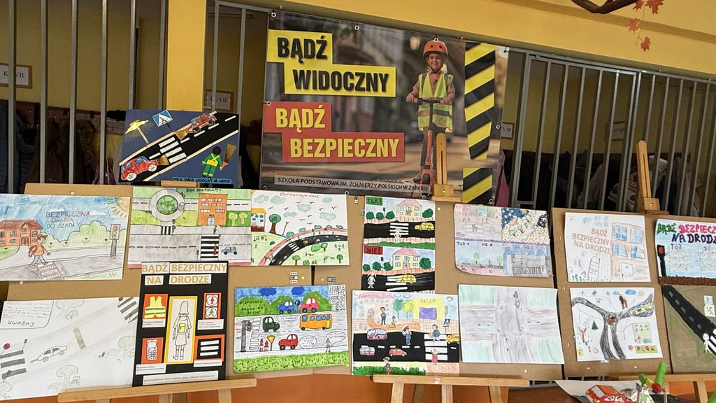 W konkursie plastycznym pt. „Bądź bezpieczny na drodze – myśl i reaguj” wzięło udział 27 uczniów, którzy z wielkim zaangażowaniem podeszli do wykonania swoich prac.